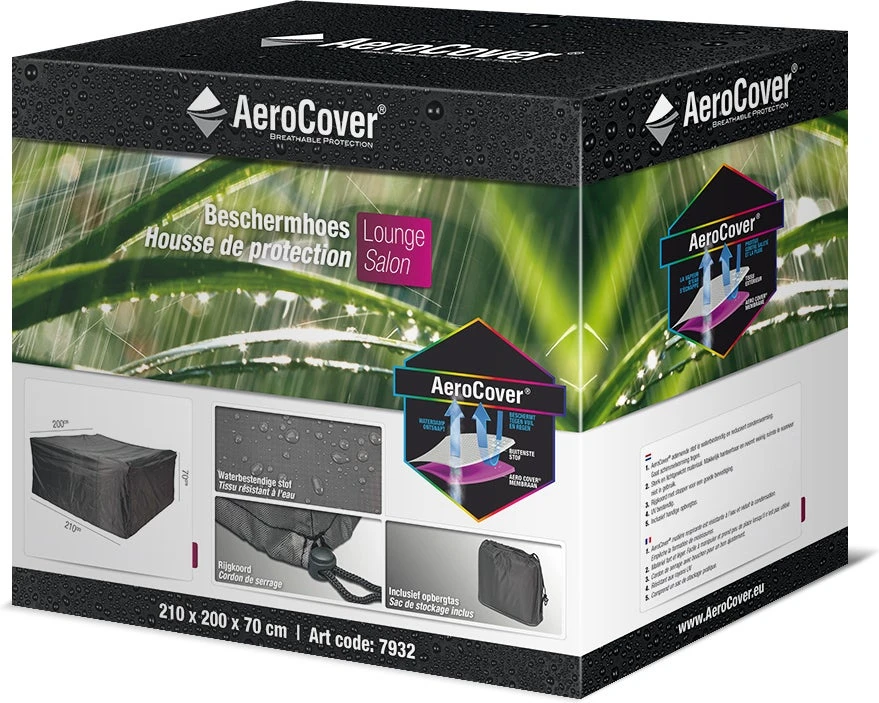Aerocover loungesethoes, beschermt uw loungeset tegen vuil en regen! Aerocover is gemaakt van sterk, lichtgewicht ripstop polyester en is makkelijk hanteerbaar en neemt weinig ruimte in. Deze Aerocover loungesethoes is voorzien van een rijgkoord met stopper voor een goede bevestiging.
