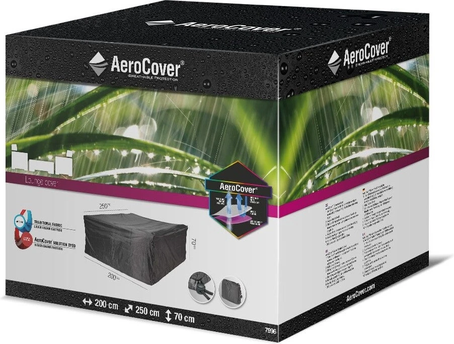 Aerocover loungesethoes, beschermt je loungeset tegen vuil en water! Deze loungesethoes is gemaakt van sterk, lichtgewicht ripstop polyester en is makkelijk hanteerbaar en neemt weinig ruimte in. Deze Aerocover is voorzien van een rijgkoord met stopper aan twee kanten van de hoes voor een goede bevestiging.