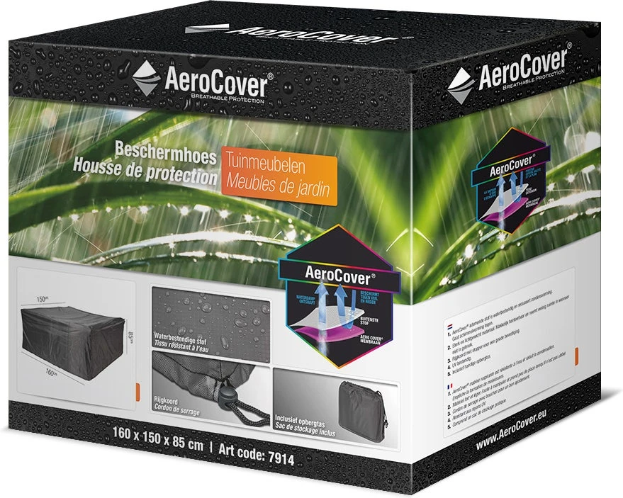 Aerocover beschermhoezen zijn waterbestendig. De Aerocover stof is waterdicht, de naden zijn spatwaterbestendig. De naden aan de bovenzijden van Aerocover tuinmeubelhoezen zijn afgedicht met waterdichte tape om doorsijpelen tegen te gaan. De naden kunnen echter nooit 100% waterdicht gemaakt worden. Zorg ervoor dat je voldoende ventilatie creëert zodat de hoes kan ademen.