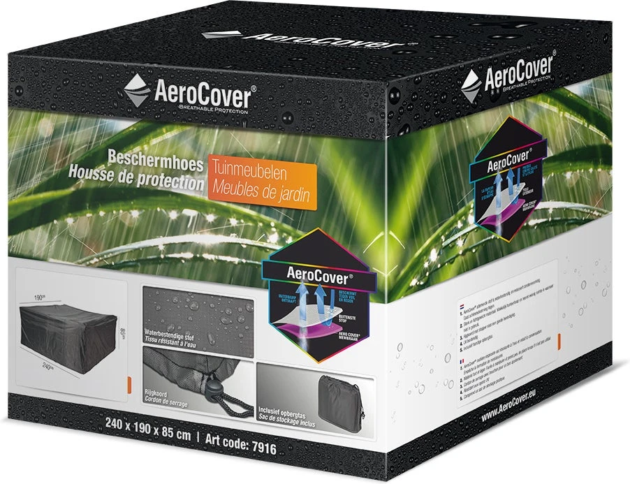 Aerocover tuinmeubelhoes, beschermt uw tuinmeubelen tegen vuil en regen! Aerocover is gemaakt van sterk, lichtgewicht ripstop polyester en is makkelijk hanteerbaar en neemt weinig ruimte in. Deze Aerocover tuinmeubelhoes is voorzien van een rijgkoord met stopper voor een goede bevestiging.