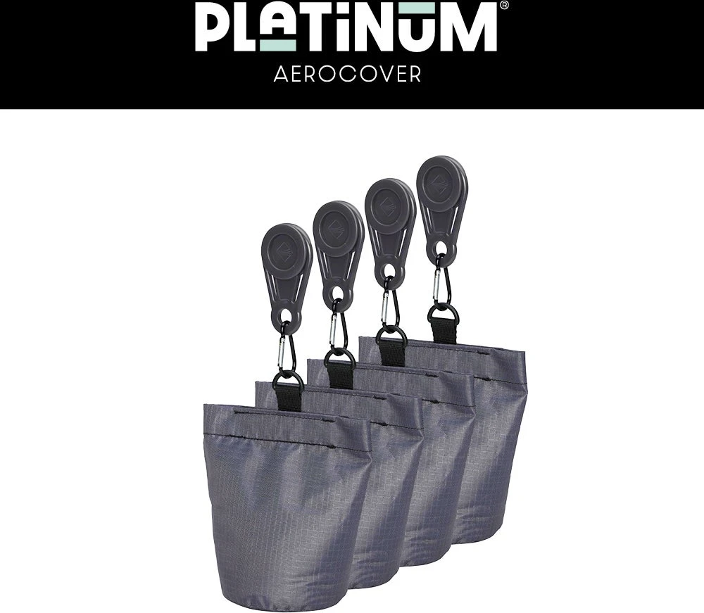 Met deze Aerocover zandzakkenset geef je wat extra gewicht aan je tuinmeubelhoes. De 4 zandzakjes kunnen doormiddel van een klemmetje aan de hoes worden bevestigd. Door het extra gewicht dat aan de hoes hang wordt deze mooi op zijn plaats gehouden. Zo trekt je hoes mooi strak en kan regenwater makkelijk weglopen. De zakjes dienen gevuld te worden met zand en hebben een afmeting van 14 x 14 cm.