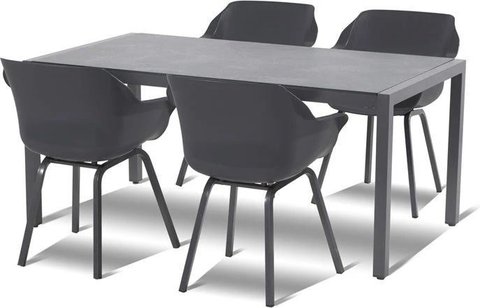 Het afwateringssysteem voor alle weersomstandigheden, de fijne zit en de strakke belijning maken deze eettafelstoel uniek. De Sophie Element heeft een unieke uitstraling door de rechthoekige poten. Dit net als het zusje, de Sophie Studio, deze heeft conische poten.