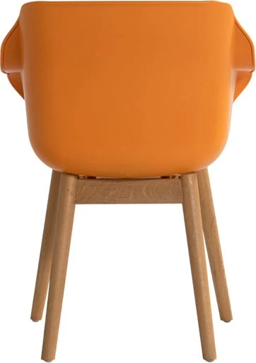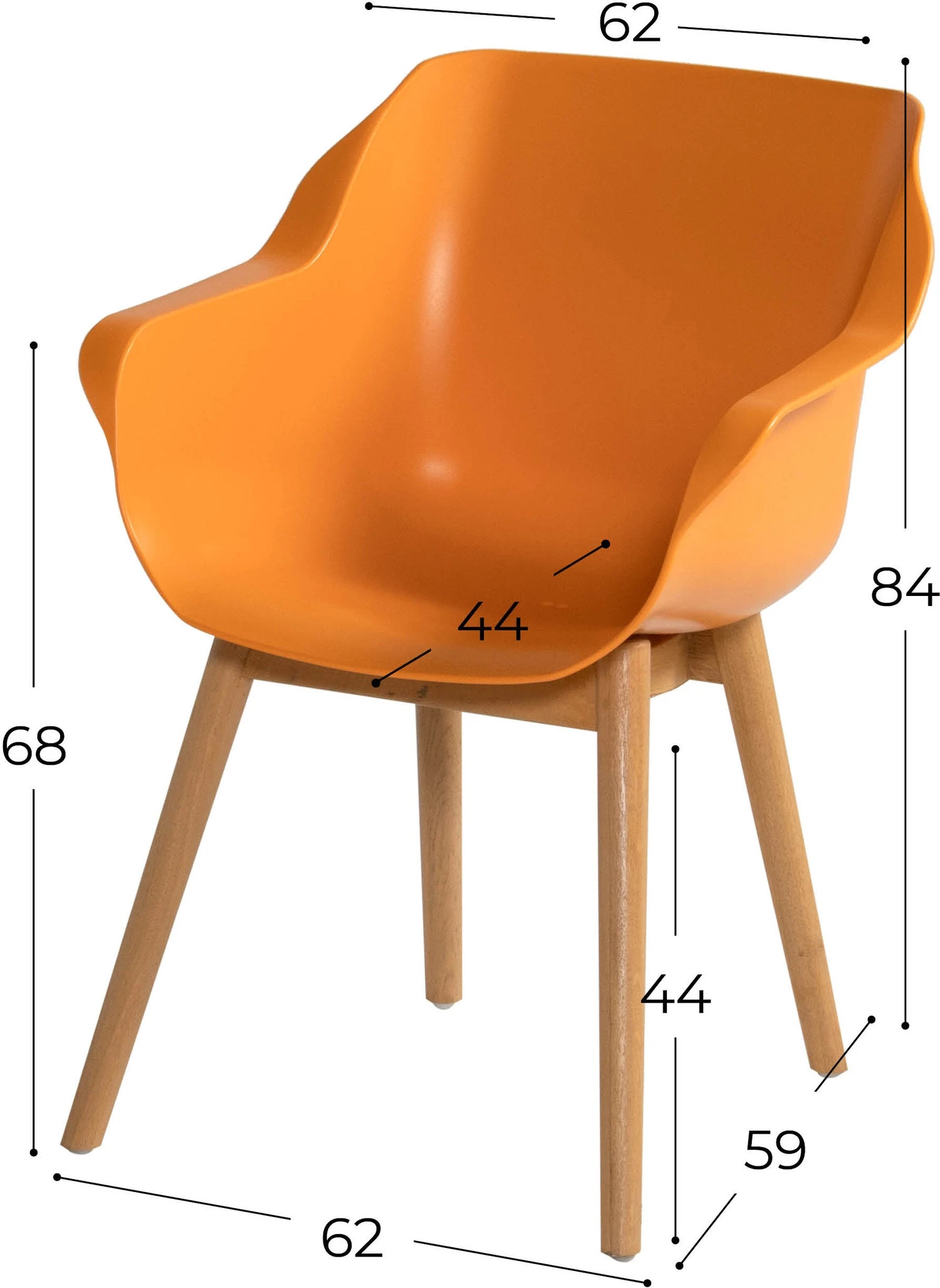 De Sophie Studio armchair uit de collectie van Hartman bestaat uit een aluminium onderstel met daarop een ergonomische gevormde kuip van hoogwaardige kwaliteit kunststof in de kleur oranje. Dankzij het nieuwe ‘Curved Technology’ ontwerp wordt een extreem comfortabele zit ervaren. En niet alleen de zit is geweldig, ook het aantrekkelijke en moderne design blijft niet onopgemerkt. Het elegante teakhouten onderstel maakt de tuinstoel net iets anders dan de andere Sophie kuipstoelen.