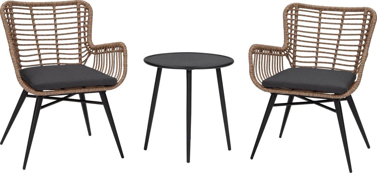 Loungestoel Bibi is lekker licht van gewicht door het stalen frame dat is afgewerkt met een beschermende poedercoating in de kleur mat zwart en heeft een zitting van geweven wicker in de kleur naturel. Dit materiaal met de looks van natuurlijk riet of rotan staat bekend om zijn lange levensduur.