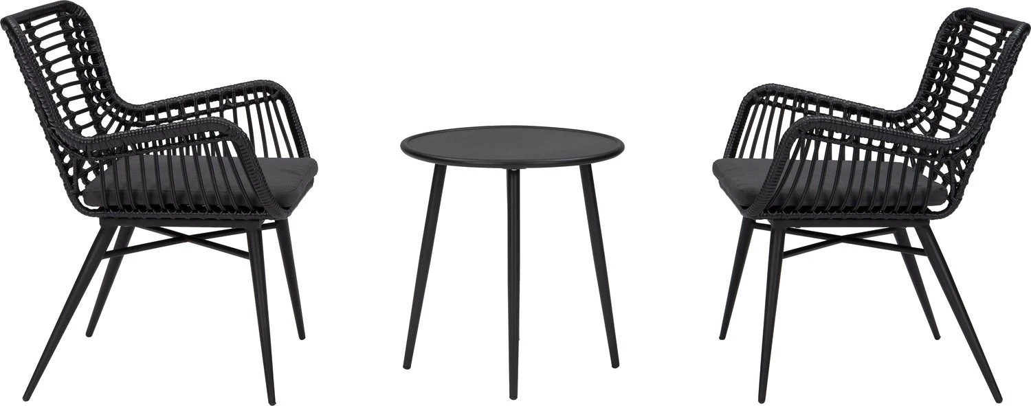 Loungestoel Bibi is lekker licht van gewicht door het aluminium frame dat is afgewerkt met een beschermende poedercoating in de kleur mat zwart en heeft een zitting van geweven wicker in de kleur zwart. Dit materiaal met de looks van natuurlijk riet of rotan staat bekend om zijn lange levensduur.