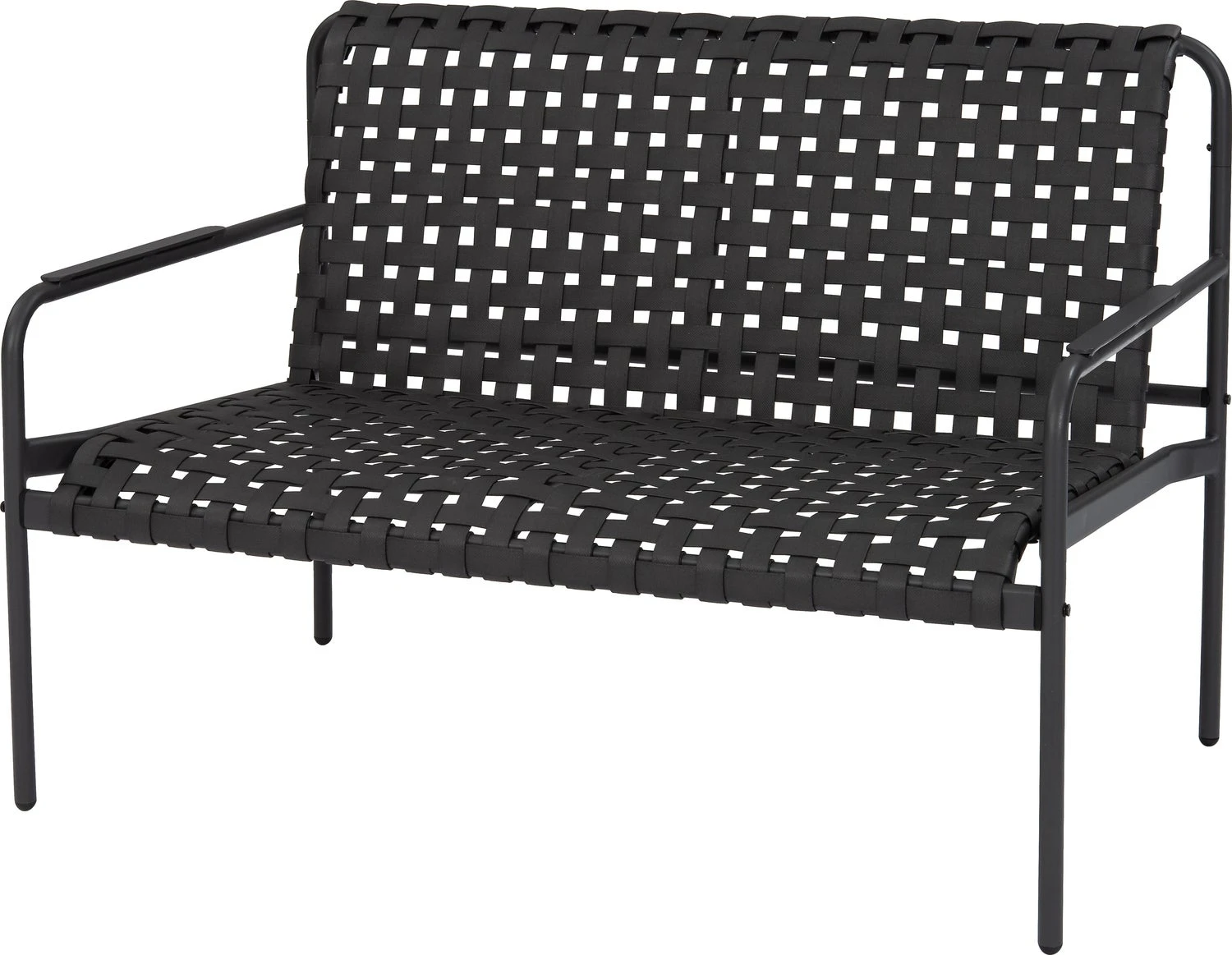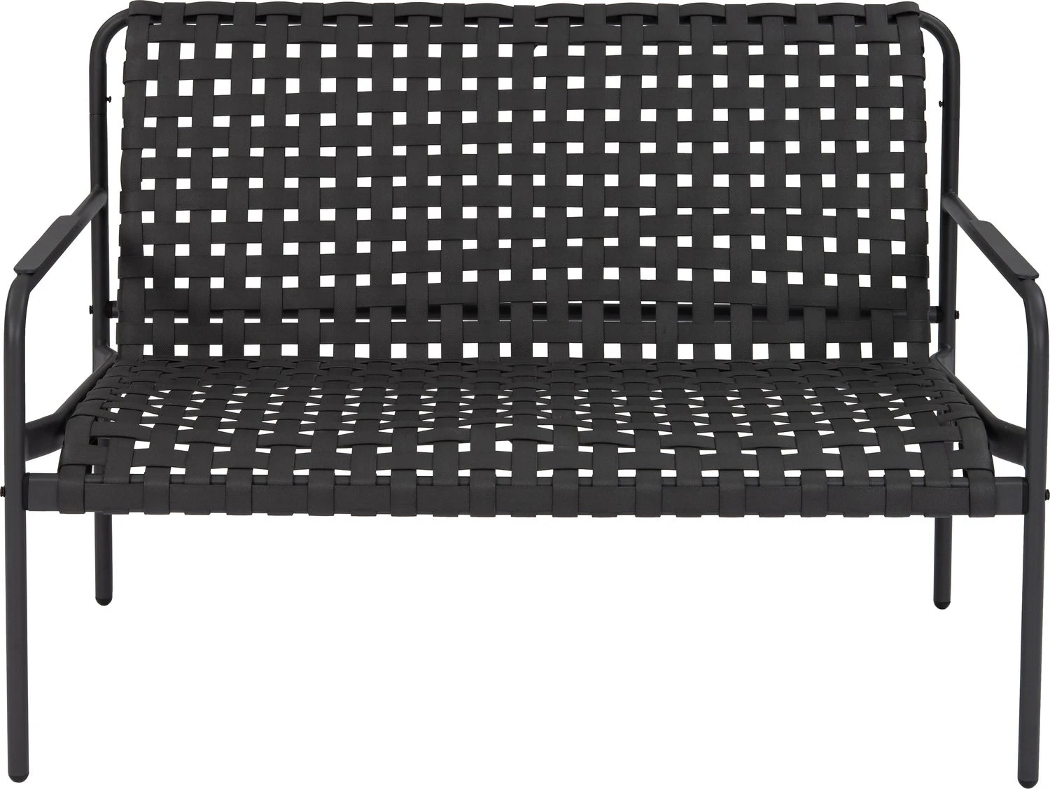 De 2-persoons buitenbank is gemaakt van aluminium dat is afgewerkt met een beschermende poedercoating in de kleur zwart. Hierdoor zijn water en vuil gemakkelijk afneembaar. De zitting van deze tuinbank is gemaakt van geweven rotan in dezelfde kleur als het frame.