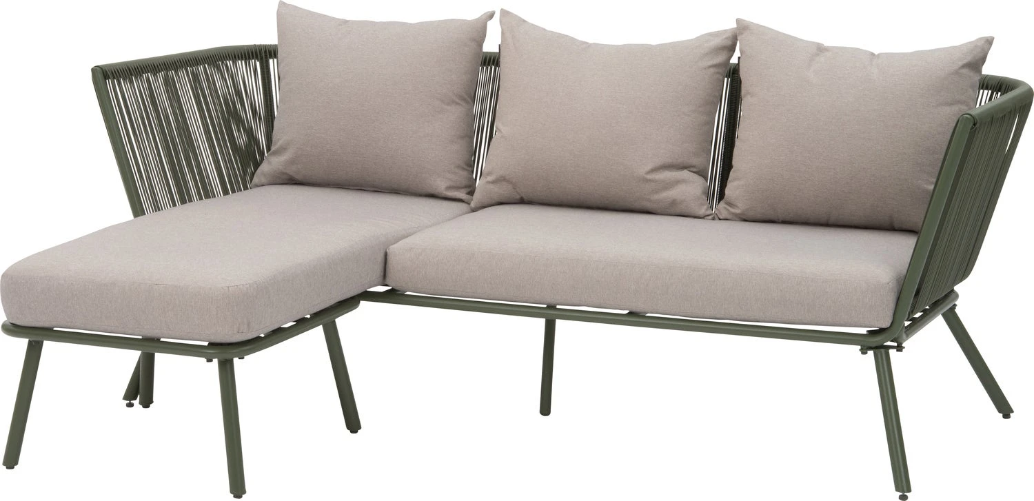 Zit jij ook het liefst lekker met de voetjes omhoog in de relaxstand? Dan is deze fijne 3-persoons loungebank met chaise longue in stoer legergroen de ideale aanwinst. Deze hippe Iris loungebank van Intratuin nodigt uit om je lekker te ontspannen door de bijbehorende en ultra comfortbale voetstoel waardoor je het deze zomer wel heel aangenaam maakt. Geniet van de kalmte en hoor de vogeltjes fluiten. Tijd om jezelf te verwennen met een rustmomentje en een verkoelend drankje. Vakantie vieren in eigen tuin is nog nooit zo leuk geweest!