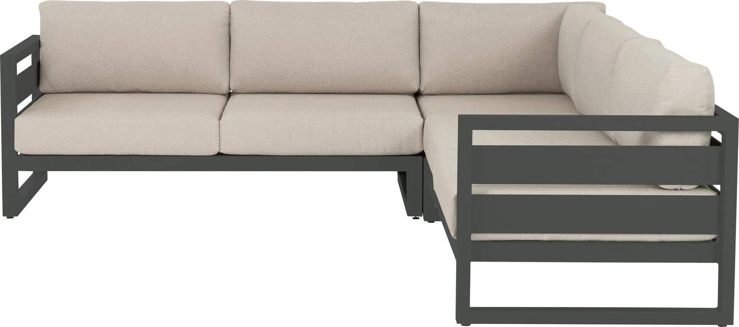 De Norma hoekset van Intratuin is een strakke 4-persoons loungeset gemaakt van hoogwaardig aluminium in stoer antraciet. Aluminium is modern en lekker licht in gewicht en kun je met de seizoenen verplaatsen, terwijl hout een natuurlijke uitstraling heeft en steeds grijzer wordt van kleur. Met dikke kussens verzacht je de stoere look van je tuinmeubelen.