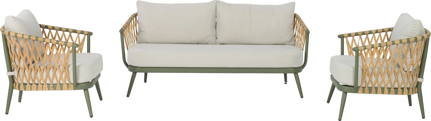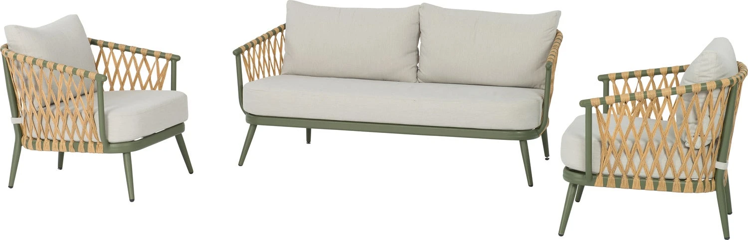 Zie jij jouw tuin ook als verlengstuk van je woonkamer? Er gaat niets boven een fijne plek in de tuin om lekker te kunnen ontspannen. En met deze Jake loungeset van Intratuin is het niet moeilijk meer om even dat momentje van rust voor jezelf te nemen! Deze 4-persoons loungeset is fraai vormgegeven en heeft een aluminium frame dat is afgewerkt met een beschermende poedercoating in stoer legergroen. De naturelkleurige leuningen zijn handgeweven en zorgen voor een mooi contrast.