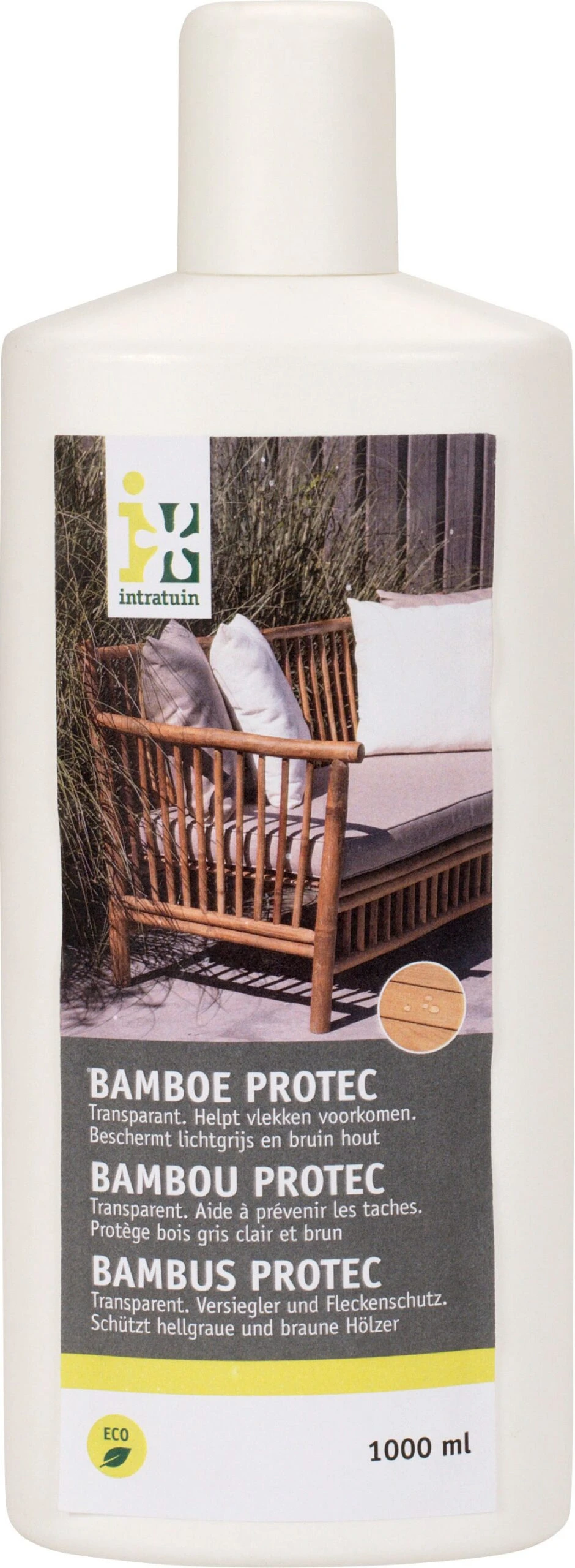 De bamboe Protec van Intratuin zorgt voor een langdurige bescherming van tuinmeubelen van Bamboo. Maakt je tuinmeubelen water- en vuilafstotend. Ook zullen schimmels niet snel optreden en ons advies is om het product een aantal per keer jaar te gebruiken.