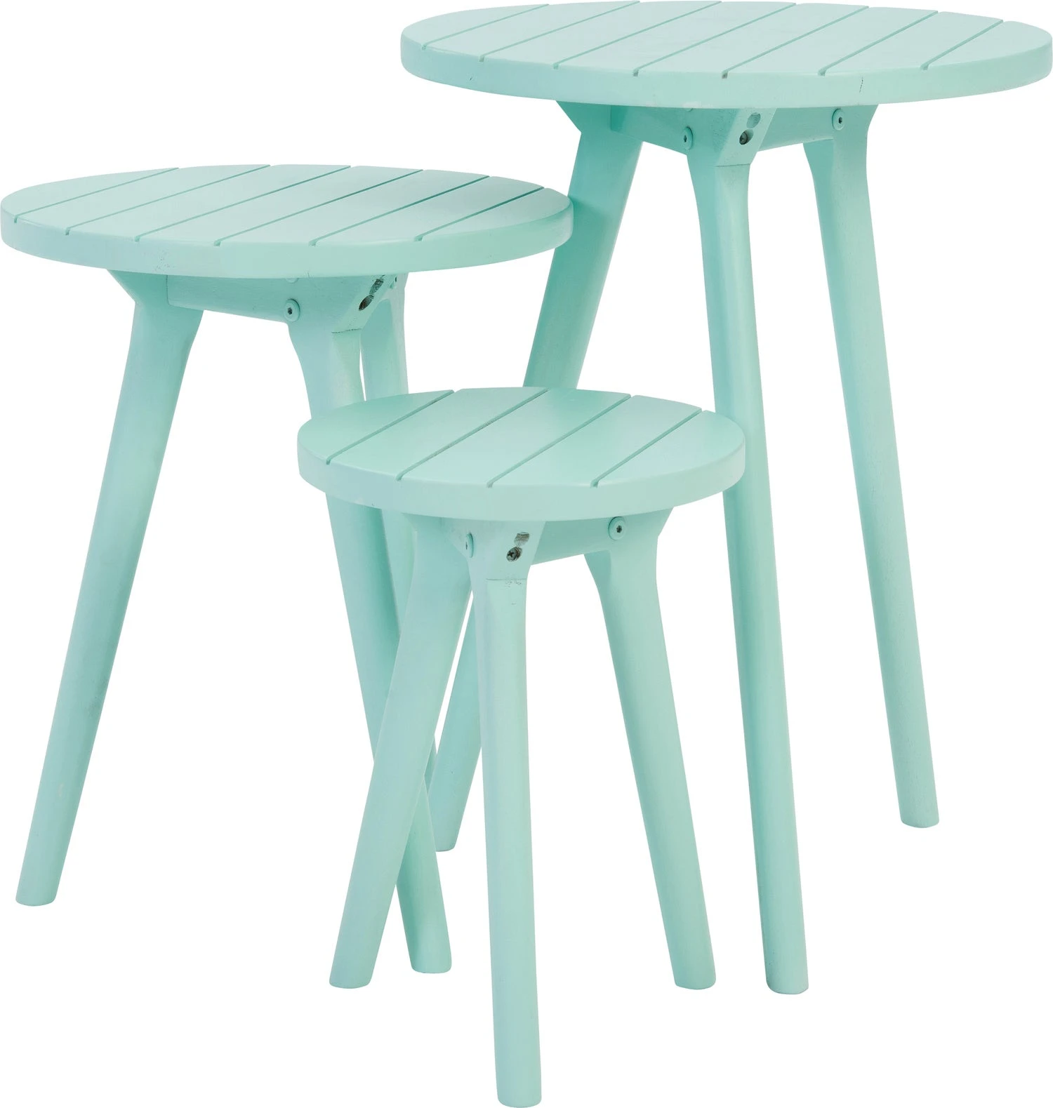 Een bijzettafel is onmisbaar voor wie flexibel in wilt kunnen spelen op de behoefte van het moment en zie je om die reden ook steeds vaker terugkomen in de tuin of op het terras. De Mira bijzettafel van Intratuin is een set van drie speels gevormde tafeltjes in verschillende maten van duurzaam Acaciahout en zijn uitgevoerd in een verfrissende pastel groene kleur. Zo houd je het deze zomer wel cool! Bovendien is bijzettafel Mira zo leuk dat je de set net zo lief binnen neerzet. Het compacte formaat zorgt er voor dat je de tafeltjes gemakkelijk kunt verplaatsen waardoor je ze altijd bij de hand hebt. Easy does it!