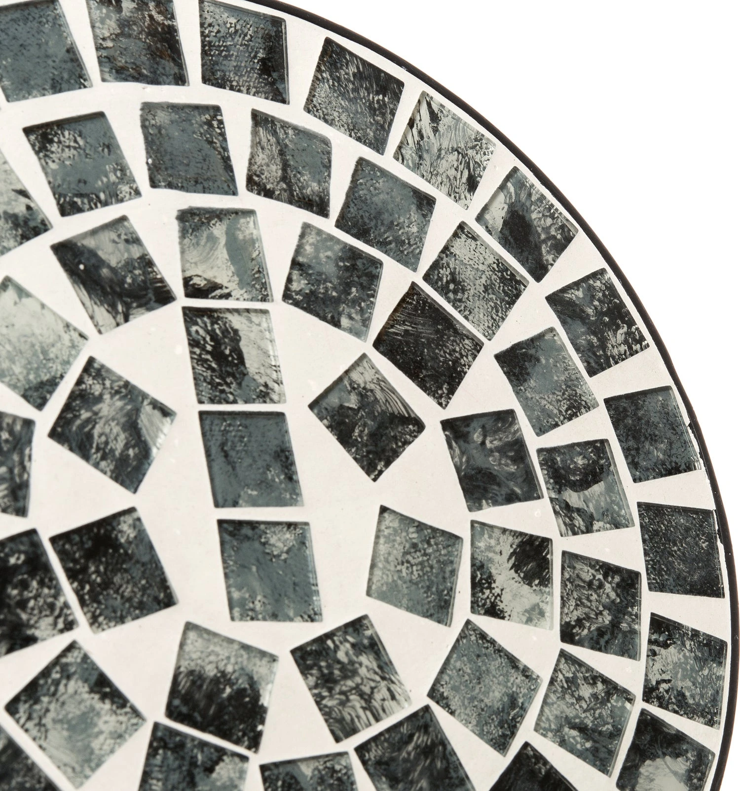 Deze Mozaïek bijzettafel uit de collectie van Intratuin is gemaakt van zwart ijzer en heeft een mozaïek van vierkante grijze tegeltjes. De tegels hebben verschillende nuances in kleur en dit zorgt voor een authentieke uitstraling. Deze serie is te verkrijgen in verschillende vormen en maten. Mix & match verschillende bij elkaar voor een speels effect. Deze bijzettafel is rond en heeft een doorsnede van 25 cm en een hoogte van 56 cm.