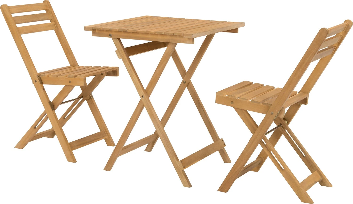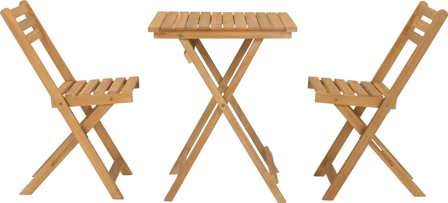 Deze compacte bistroset van Intratuin leent zich perfect om een gezellig zitje te creëren op balkon of dakterras. Met deze prachtige set kan je alle kanten op en breng je moeiteloos sfeer aan in iedere tuin. De bistroset is inklapbaar en daardoor gemakkelijk te verplaatsen naar een lekker hoekje waar de zon nog schijnt. Deze balkonset is gemaakt van duurzaam acacia hout en de bijbehorende bistrotafel heeft de ideale hoogte om knus aan te tafelen.