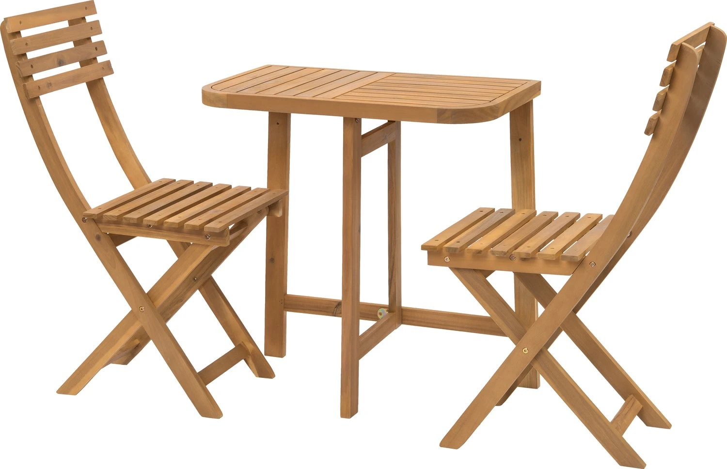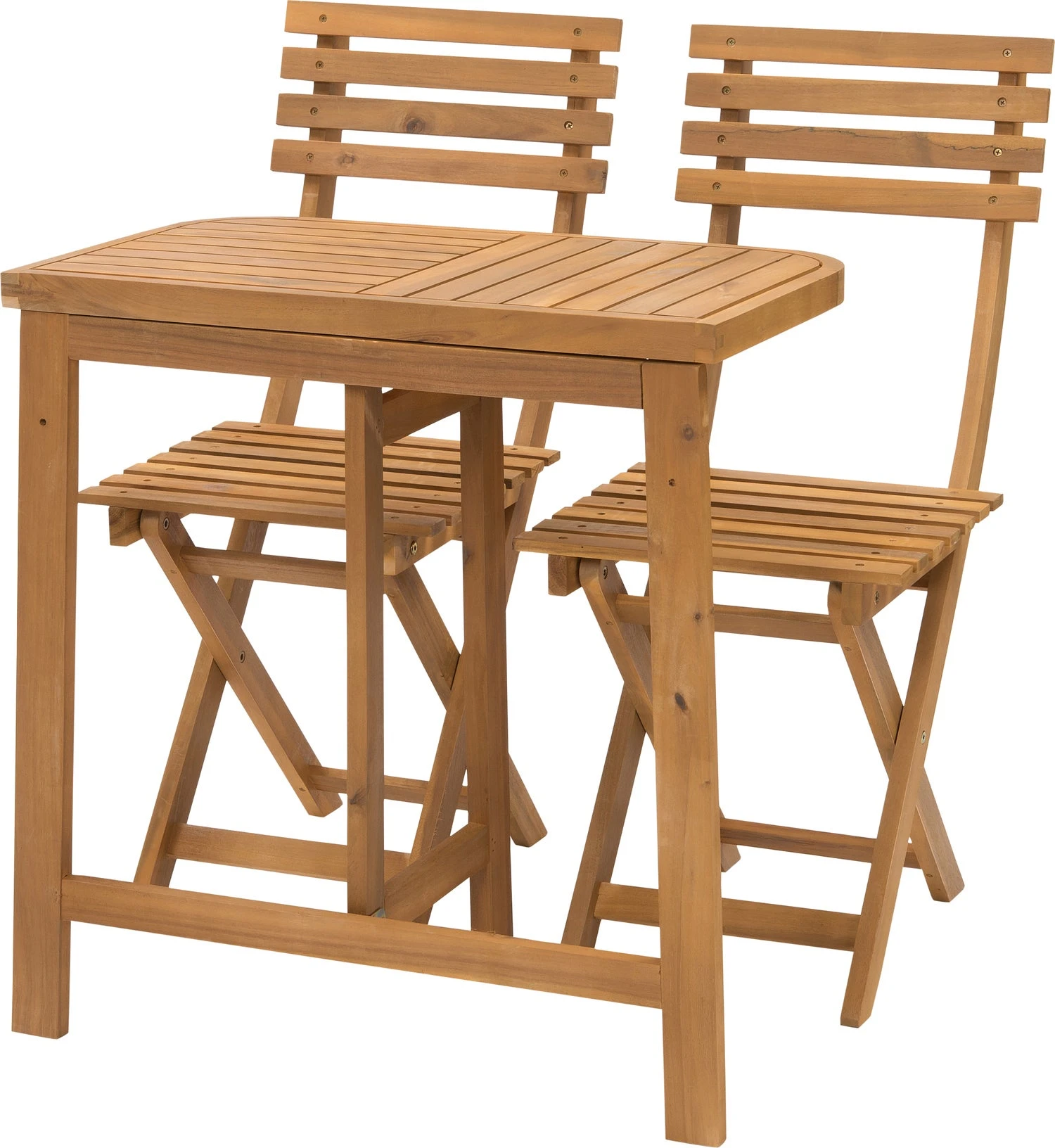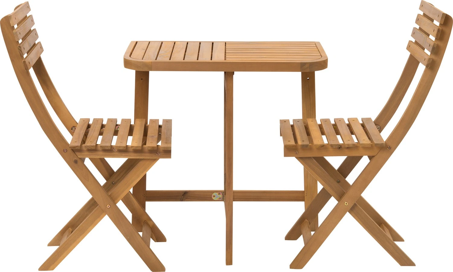 Deze compacte bistroset van Intratuin leent zich perfect om een gezellig zitje te creëren op balkon of dakterras. Met deze prachtige set kan je alle kanten op en breng je moeiteloos sfeer aan in iedere tuin. Bistroset Naomi is inklapbaar en daardoor gemakkelijk te verplaatsen naar een lekker hoekje waar de zon nog schijnt. Deze balkonset is gemaakt van duurzaam acacia hout en de bijbehorende bistrotafel heeft de ideale hoogte om knus aan te tafelen. De bistrotafel is halfrond, waardoor je deze gemakkelijk tegen een muurtje aan kunt zetten.