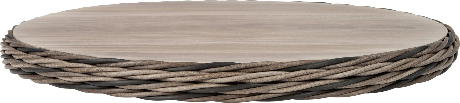 Verwen je gasten en jezelf met dit handige plateau voor op tafel. Voortaan kan je gewoon lekker blijven zitten want met dit Lazy Susan draaiplateau van Intratuin komen de lekkernijen vanzelf voorbij. Hoe fijn is dat! Draaiplateau Lazy Susan is gemaakt van wicker gevlochten op een aluminium frame en voorzien van een glasplaat met houtlook van 5 mm dikte. Het plateau is grijs van kleur en vormt een luxe toevoeging voor op tafel.
