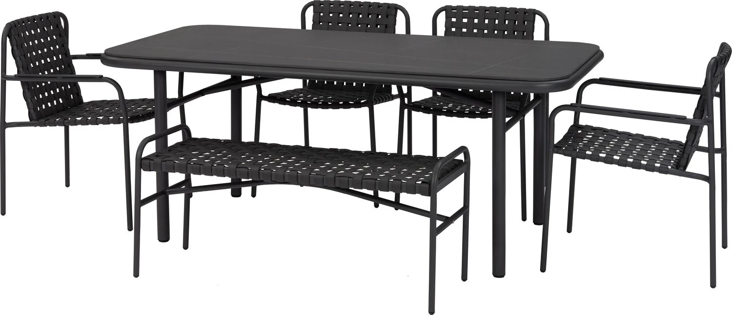 Deze Emma eettafel van Intratuin is een tijdloze aanwinst voor ieder soort tuin of terras. Tuintafel Emma is strak vormgegeven en heeft een aluminium onderstel met een gesinterde kunststof tafelblad van 11 mm in de kleur zwart wat zorgt voor een moderne en stoere look. Doordat het tafelblad gemaakt is van kunststof is deze tafel onderhoudsvrij. Als er iets gemorst word op de tafel, laat dit geen vlekken achter. Maar doordat het tafelblad gesinterd is, lijkt het qua uiterlijk op natuursteen.