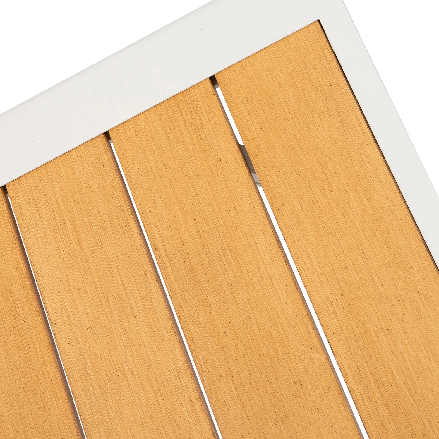 Houd jij ook zo van lekker lang tafelen? Schuif aan en proost op het mooie leven! Met deze riante Roos eettafel van Intratuin kies je voor gemak. Door het grote formaat past iedereen aan tafel en is er zelfs nog genoeg plek voor spontaan bezoek. Bovendien is diningtafel Roos lekker licht van gewicht en dat maakt hem gemakkelijk te verplaatsen. Eettafel Roos is volledig gemaakt van aluminium dat is afgewerkt met een beschermende poedercoating waardoor de diningtafel goed bestand is tegen weersinvloeden. Het frame is lichtgrijs van kleur en het met latten uitgevoerde tafelblad is voorzien van een decoratieve teaklook wat zorgt voor een leuk contrast en speels effect.