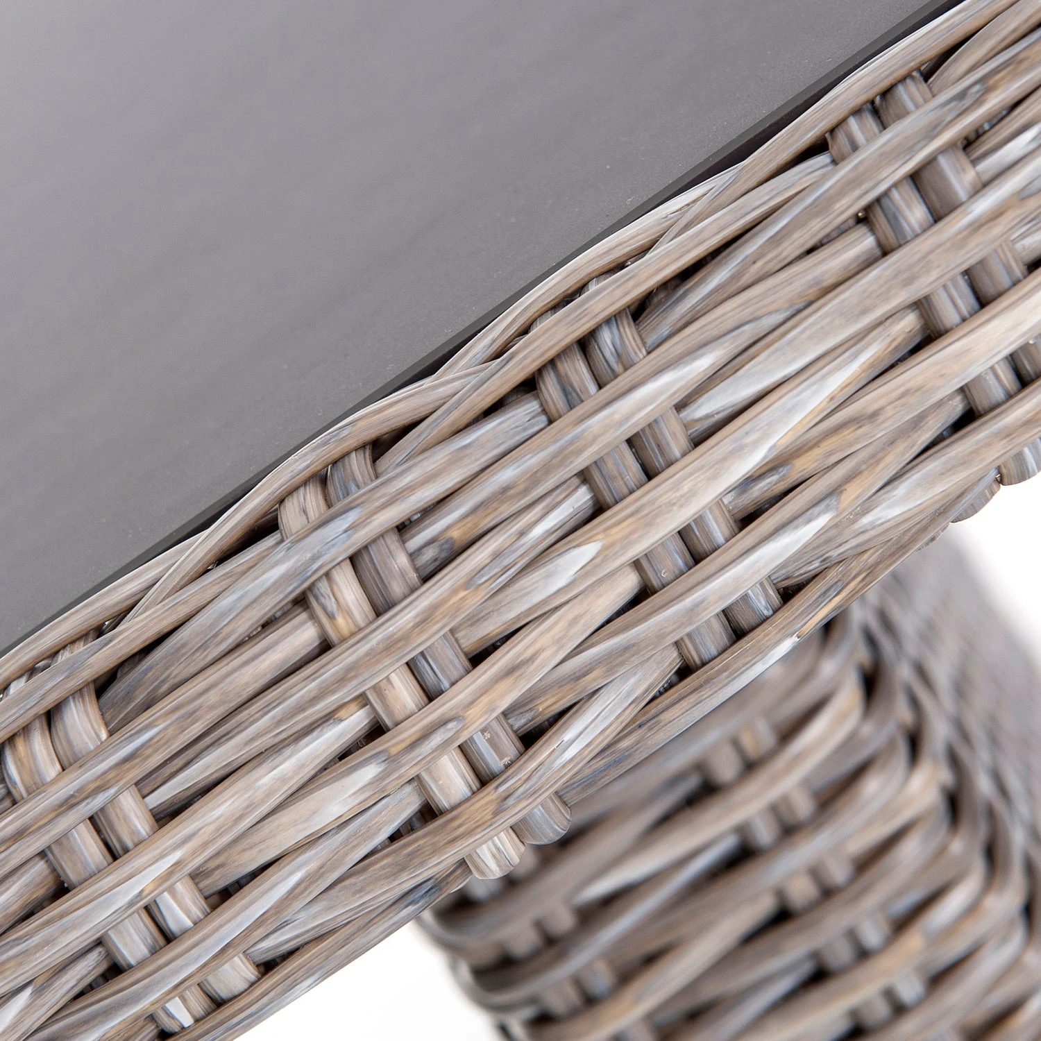 Dit product is gemaakt van hoogwaardig kunststof, gevlochten op een aluminium frame. Dit meubel kan het hele jaar buiten blijven staan. Het is aan te raden dit meubel tweemaal per jaar te reinigen en te behandelen met Intratuin tuinmeubelreiniger en –beschermer. Deze beschermer bevat een UV/filter waardoor verkleuren, verouderen en verweren wordt tegengegaan.