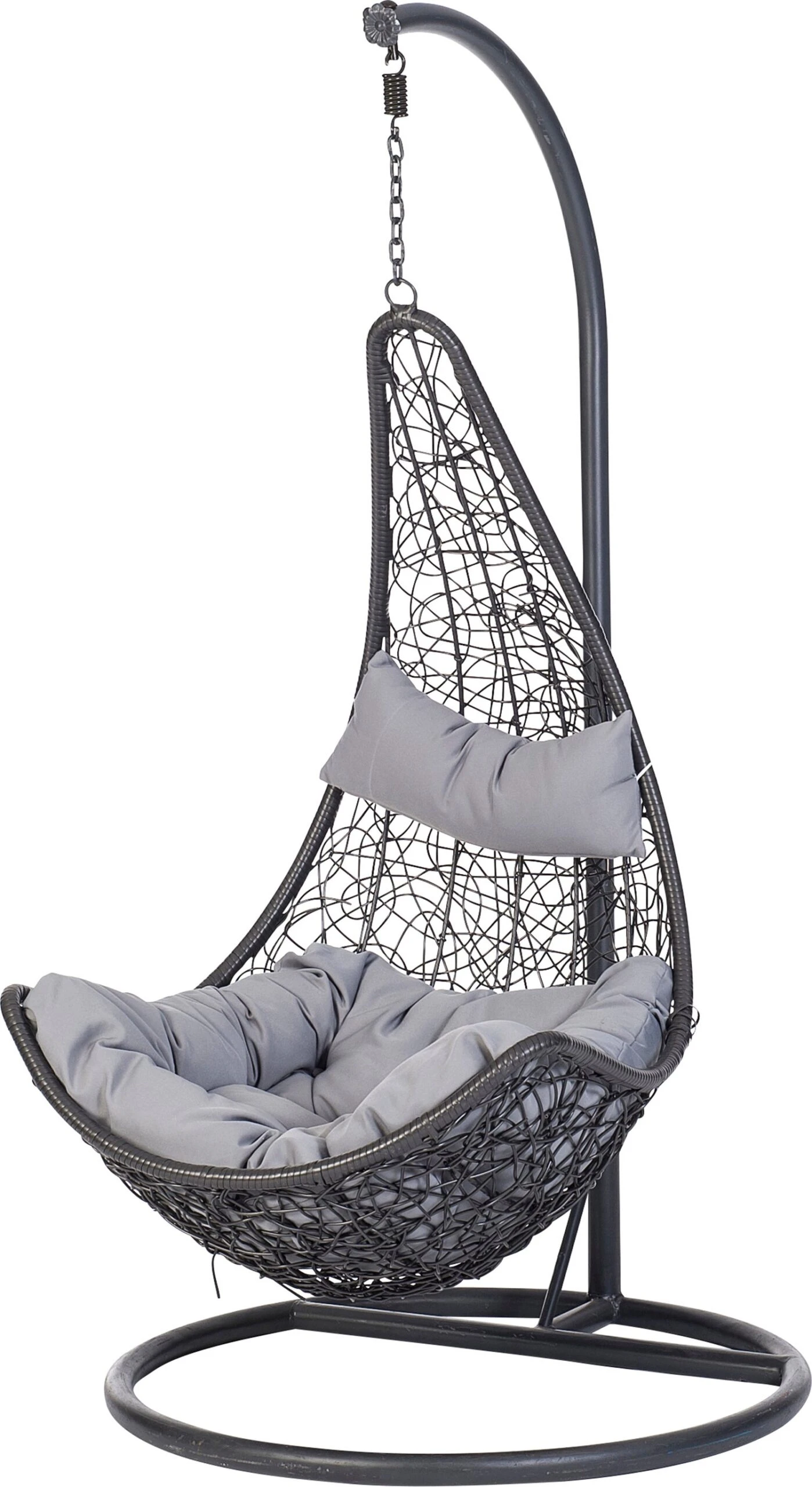 De Intratuin hangstoel Feye in standaard is ideaal om in te relaxen. Erg leuk voor in de tuin, het terras of op het balkon en past in elk interieur. De hangstoel heeft de kleur antraciet en is gemaakt van kunststof gevlochten op een frame van gecoat staal in de kleur mat grijs. Inclusief comfortabele kussens in de kleur grijs.