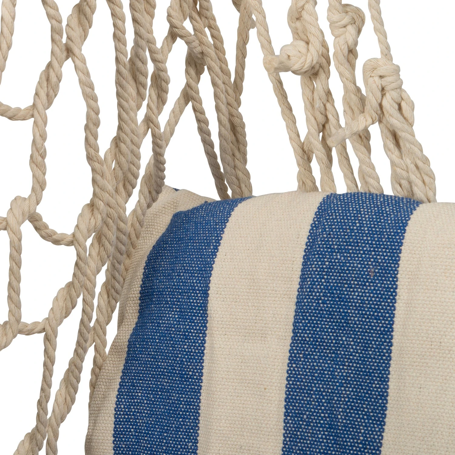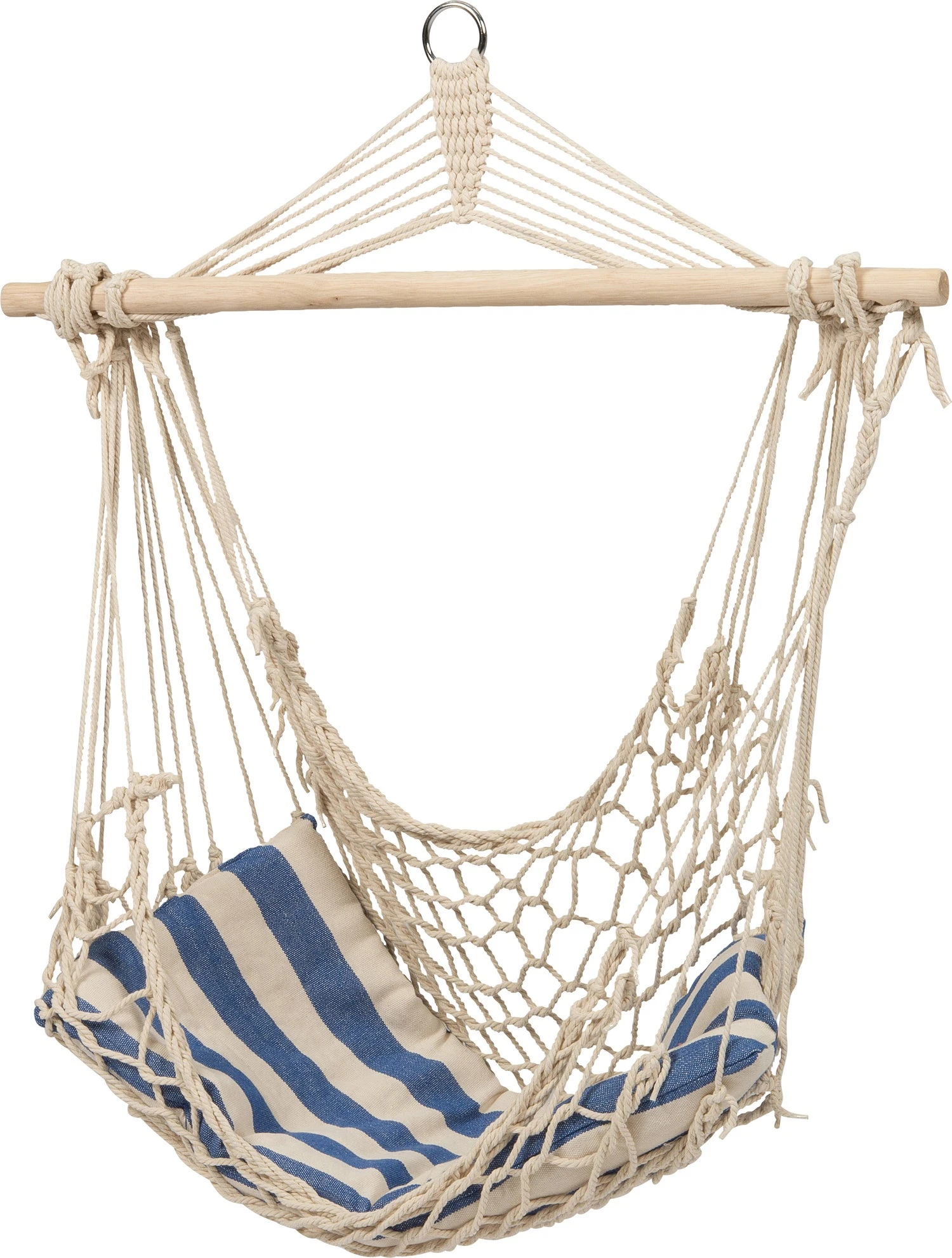 Een paradijselijke hangplek om heerlijk te ontspannen. Wie wilt dat nou niet? Met deze toffe hangstoel met streep dessin in de kleuren blauw en wit is het niet moeilijk meer om even dat momentje van rust voor jezelf te nemen! De hangstoel is gemaakt van katoen en nodigt direct uit om je wat minder druk te maken. Hup in de relaxmodus!