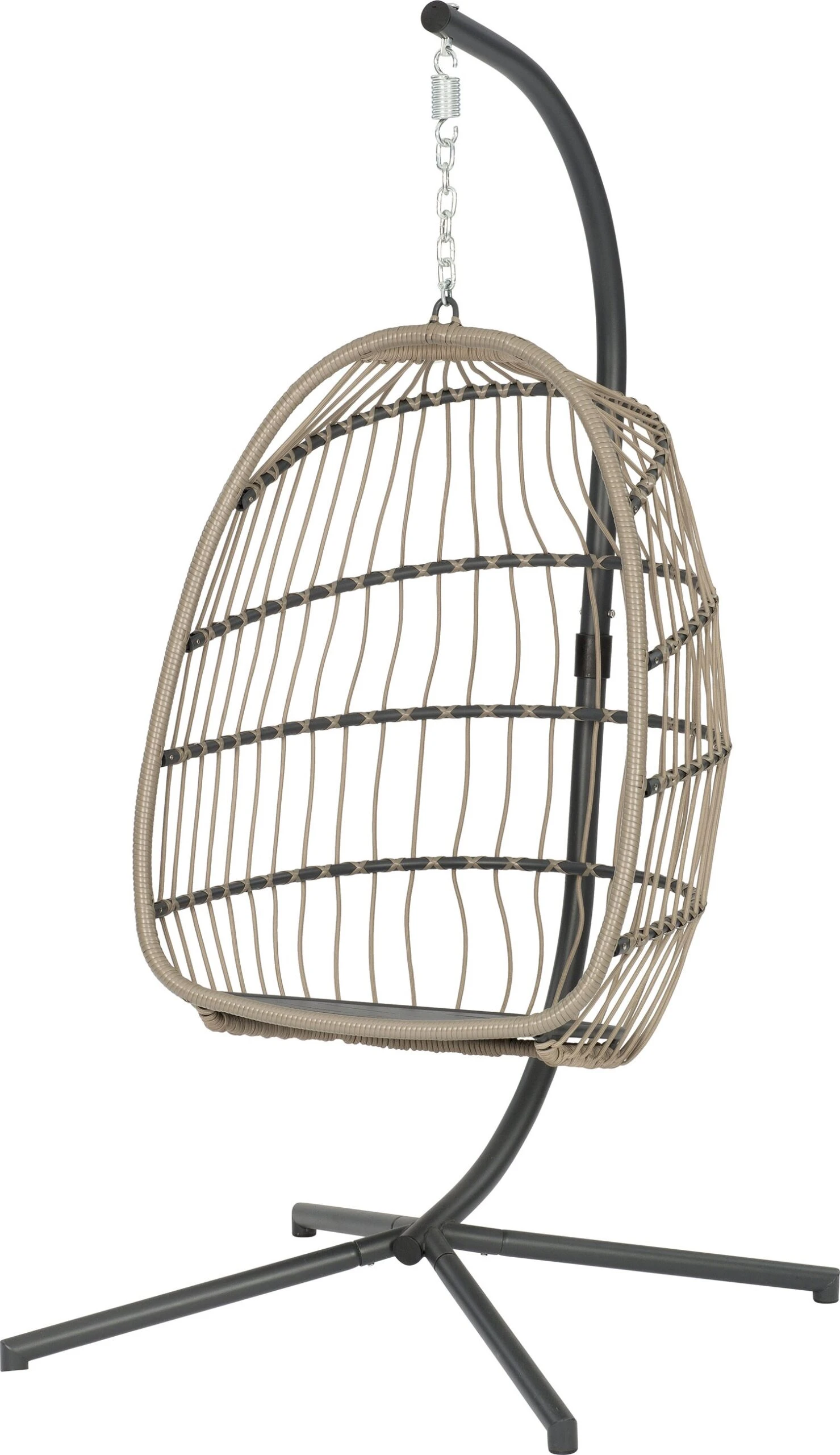 Je hoeft dus niet bang te zijn dat het op den duur zijn stevigheid verliest. Het gebruikte wicker is een kunststof dat ook wel bekend staat om de lange levensduur. Een mooie mix van materialen die er voor zorgen dat je nog meer plezier zult hebben van deze fijne hangstoel. De meegeleverde solide standaard is zwart van kleur en afgewerkt met een beschermende poedercoating.