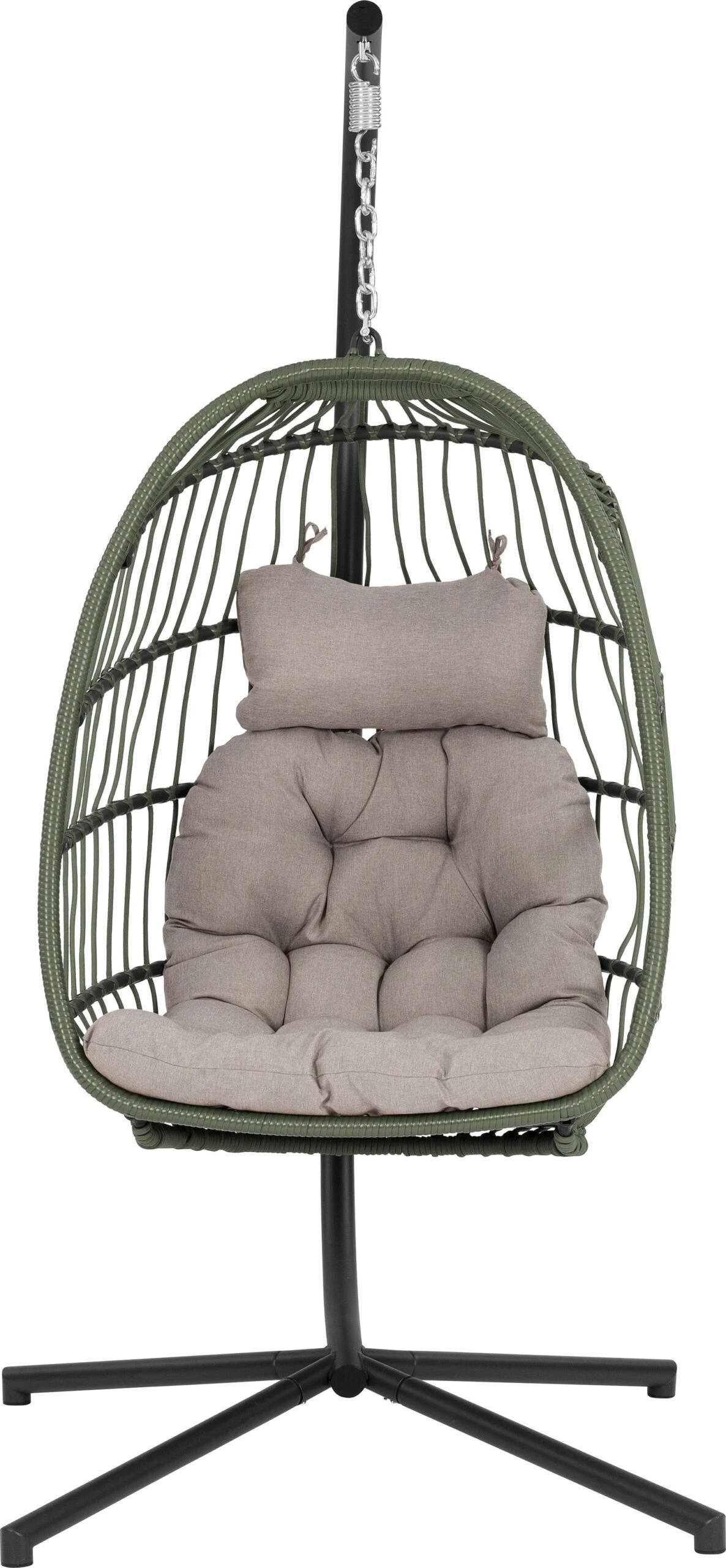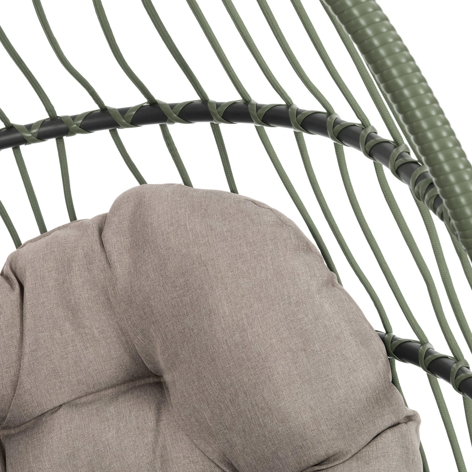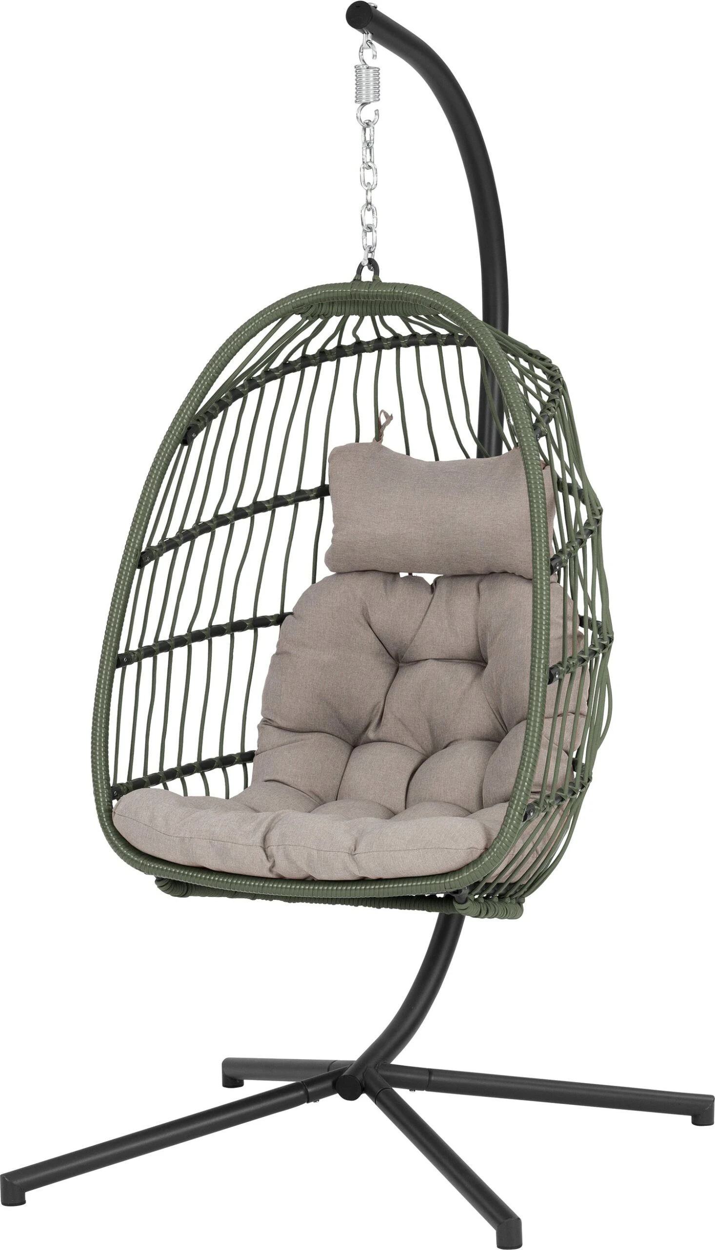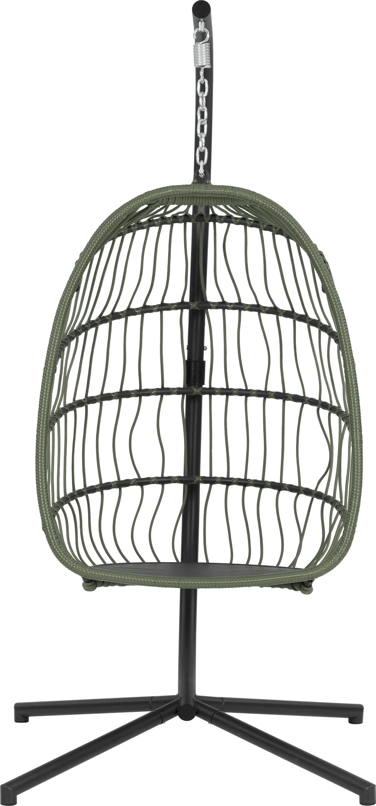 In deze luxe Pax hangstoel van Intratuin geniet je al zwierend van buiten en zie je jouw tuin weer vanuit een heel ander perspectief. Hoe leuk is dat! Hangstoel Pax is een 1-persoons hangei met een donkergrijs gecoat stalen frame dat is voorzien van wicker met nylon touwdraad in hip legergroen. Dit touw is oersterk en speciaal ontwikkeld voor buiten. Je hoeft dus niet bang te zijn dat het op den duur zijn stevigheid verliest.