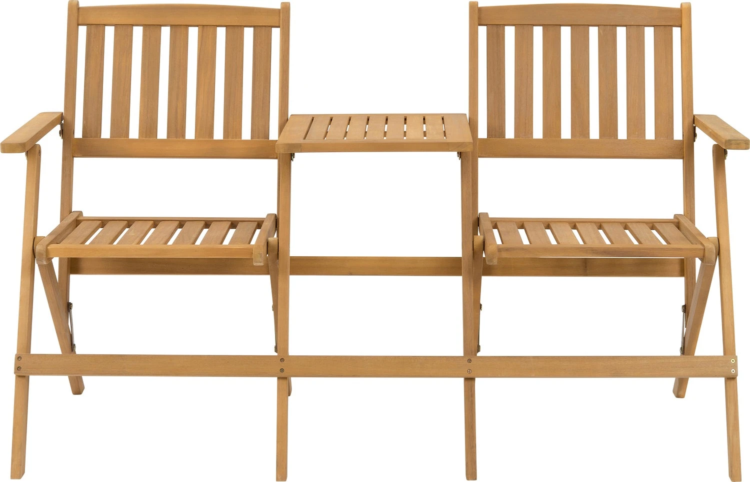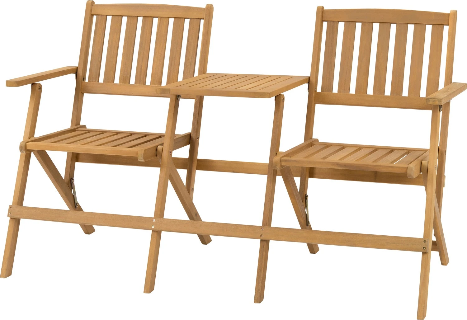 Zit jij ook het liefst knus met zijn tweeën op het terras? Met de inklapbare tête-a-tête uit de collectie van Intratuin is het niet moeilijk meer om even dat momentje van rust voor jezelf te nemen om van de laatste zonnestralen te genieten. Deze comfortabele dubbelzitter is gemaakt van acaciahout en is geolied wat zorgt voor een neutrale uitstraling.