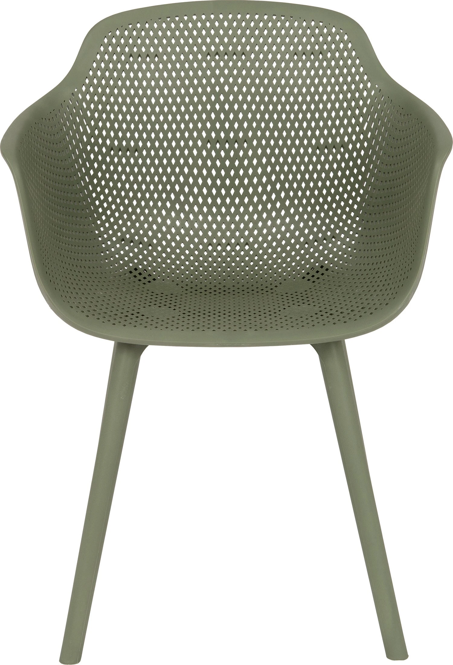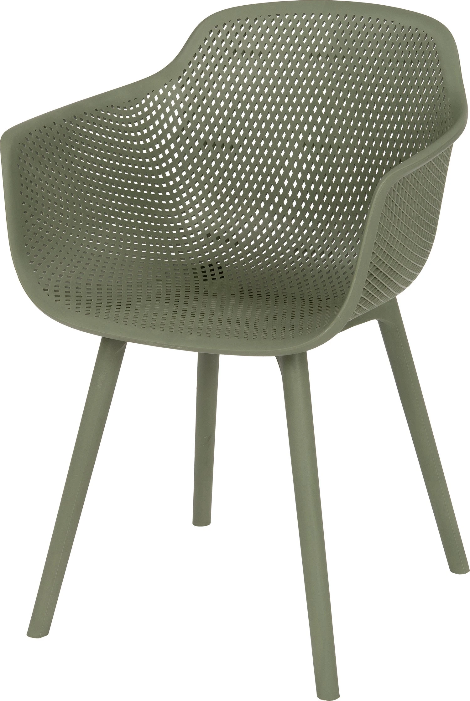 Met deze moderne kuipstoel van Intratuin uit de serie Dex in de kleur legergroen je zeker de show. Eettafelstoel Dex heeft een eenvoudig design met een tijdloze uitstraling en een comfortabele zit door de fijne kuipzitting. Eettafelstoel Dex is onderhoudsvriendelijk en kan wel tegen een stootje door het gebruik van hoogwaardig polypropeen. Dit maakt de tuinstoel niet alleen een fijne aanwinst voor tuin en terras, door zijn fraaie uiterlijk zet je de kuipstoel net zo lief binnen neer. Een schapenvachtje of een paar lekkere kussens er in en het lange tafelen kan beginnen. Aan tafel!