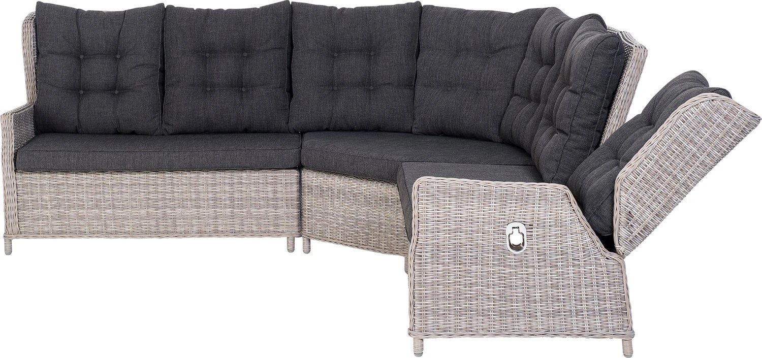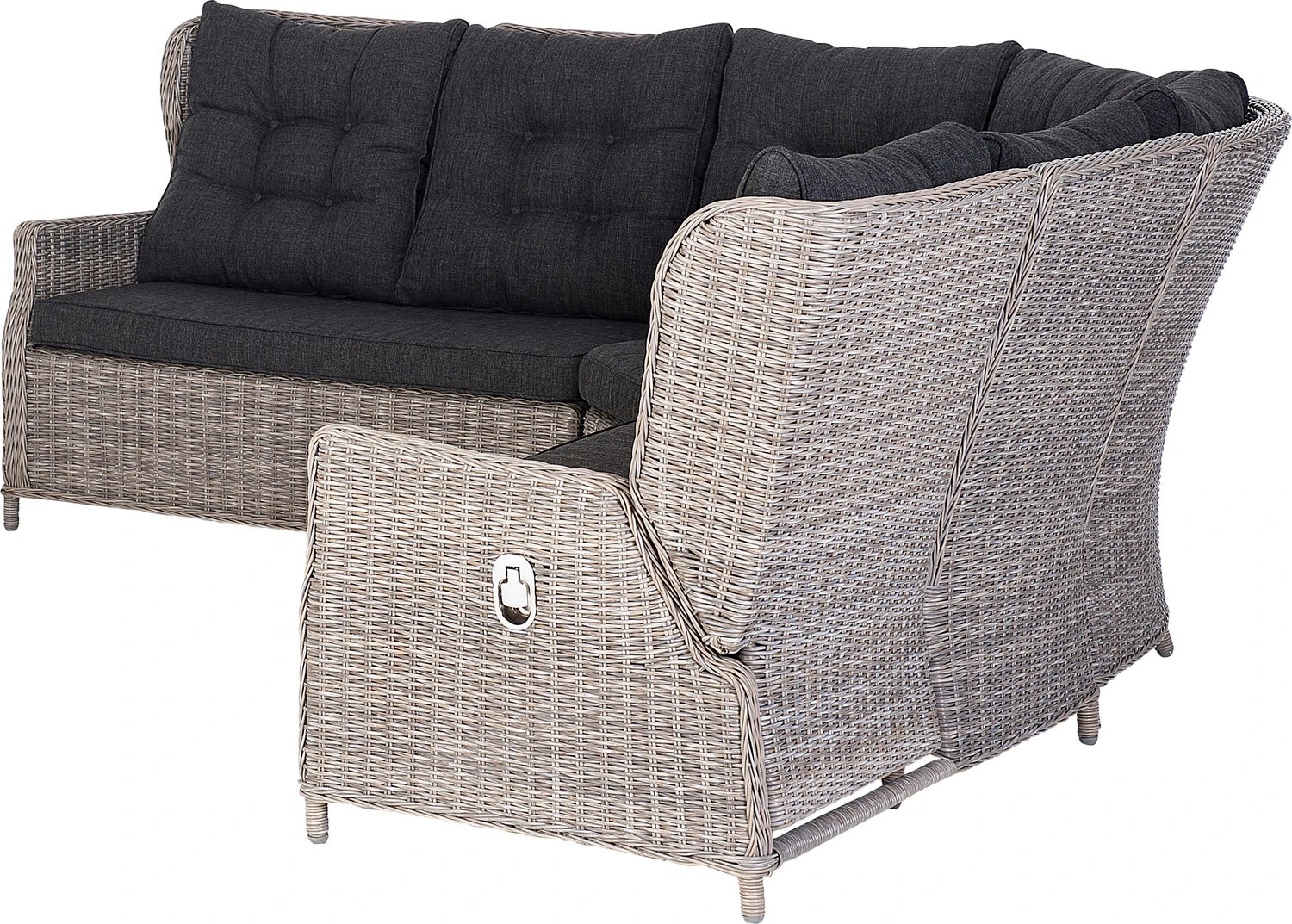 Deze loungebank is gemaakt van wicker gevlochten op een aluminium frame en uitgevoerd met een verstelbare rugleuning in de hoeken voor extra zitcomfort. Hierdoor is de set een absolute aanwinst voor wie op zoek is naar één set die beide mogelijkheden biedt. Om ultiem te kunnen ontspannen hoef je nu alleen nog maar de rugleuning in de relaxstand te zetten en chillen maar! Daarna lekker uitgebreid dineren met familie en vrienden? Het kan allemaal met deze fijne loungehoek uit de serie Sanur.