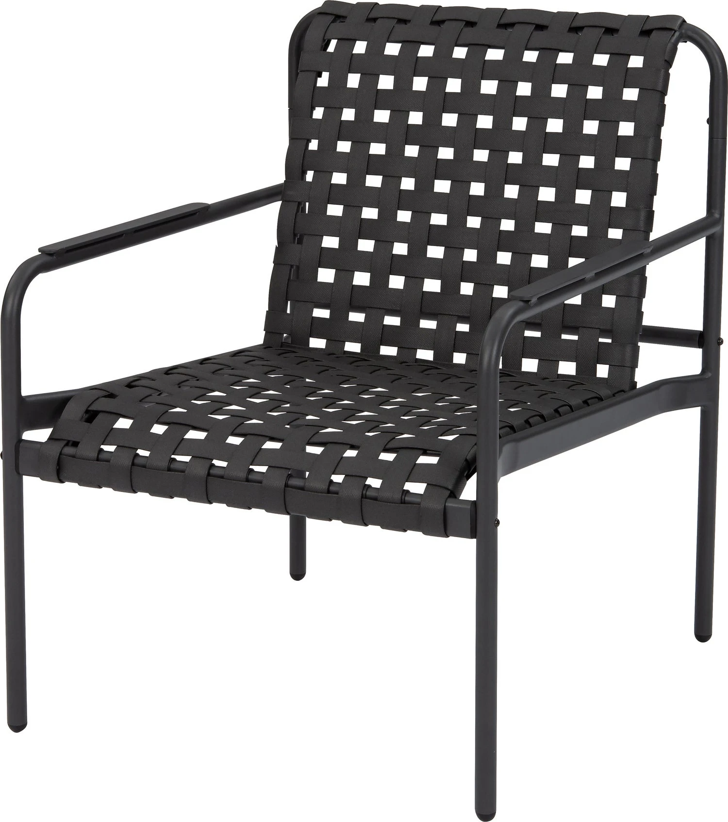 Voor dit plaatje maak je graag een plekje vrij op je terras! Loungestoel Emma is een hippe blikvanger die door zijn fraaie vormgeving en hoge zitcomfort in ieder soort tuin tot zijn recht komt. Deze Emma loungestoel is gemaakt van aluminium dat afgewerkt is met een beschermende poedercoating in de kleur zwart. Hierdoor zijn water en vuil gemakkelijk afneembaar. De zitting van deze stoel is gemaakt van geweven rotan in dezelfde kleur als het frame.