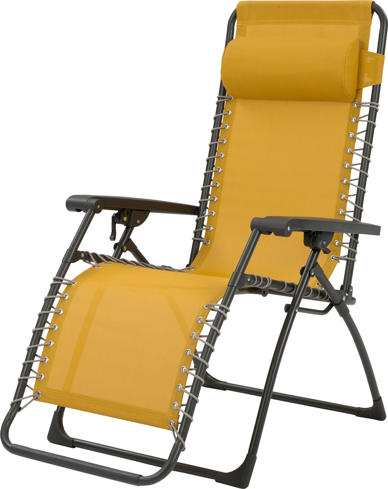 De Sanya relaxstoel van Intratuin is een multifunctionele tuinstoel waar je zowel ontspannen op kunt zitten als liggen. Je klapt gewoon de rugleuning naar achteren, gooit je voeten omhoog en chillen maar! Relaxstoel Sanya heeft een antraciet gecoat stalen frame met een fijne zitting van textileen in de kleur mosterdgeel. Textileen is een sterk soort kunststof dat zowel duurzaam als weerbestendig is en leent zich daarom perfect in elk denkbare setting buiten in de tuin of op het terras, op het balkon of op de camping. Deze relaxstoel uit de serie Sanya is lekker licht van gewicht en daardoor bovendien makkelijk mee te nemen. De rugleuning is soepel verstelbaar aan de hand van de armleuningen en de tuinstoel is tevens voorzien van een afneembaar hoofdkussen voor nog meer comfort tijdens het relaxen. Laat het genieten maar beginnen!