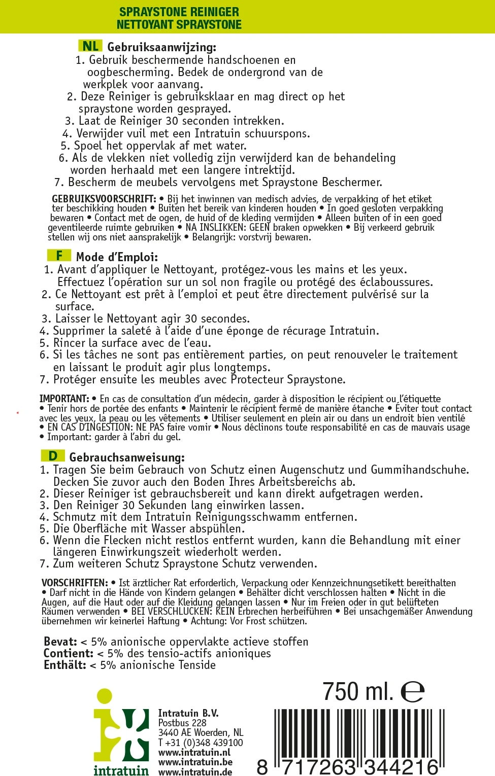 2. Deze Reiniger is gebruiksklaar en mag direct op het spraystone worden gesprayed.