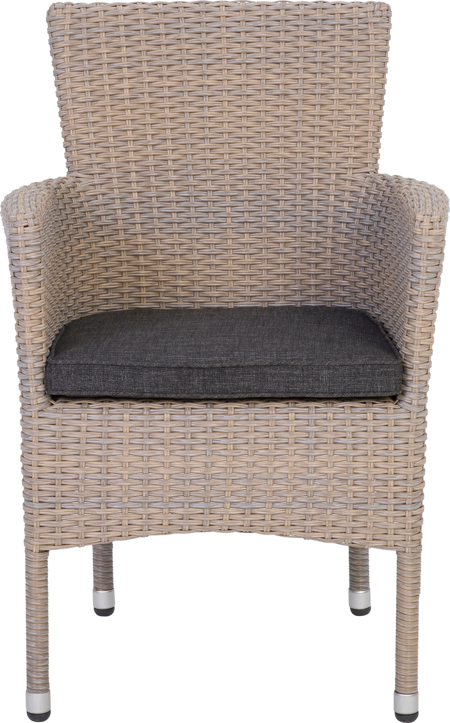 Stapelstoel Yaro is een smaakvolle tuinstoel die door het neutrale uiterlijk moeiteloos iedere tuin siert en goed te combineren is met andere tuinmeubelen. De stoel is zeer stevig en comfortabel door het aluminium frame met gevlochten wicker. Het fijne zitkussen zorgt bovendien voor optimaal zitcomfort. De zithoogte van de stoel is 43 centimeter, gemeten inclusief kussen. Fijne bijkomstigheid is dat de stoel gemakkelijk op te bergen is en niet veel ruimte in beslag neemt doordat deze stapelbaar is.