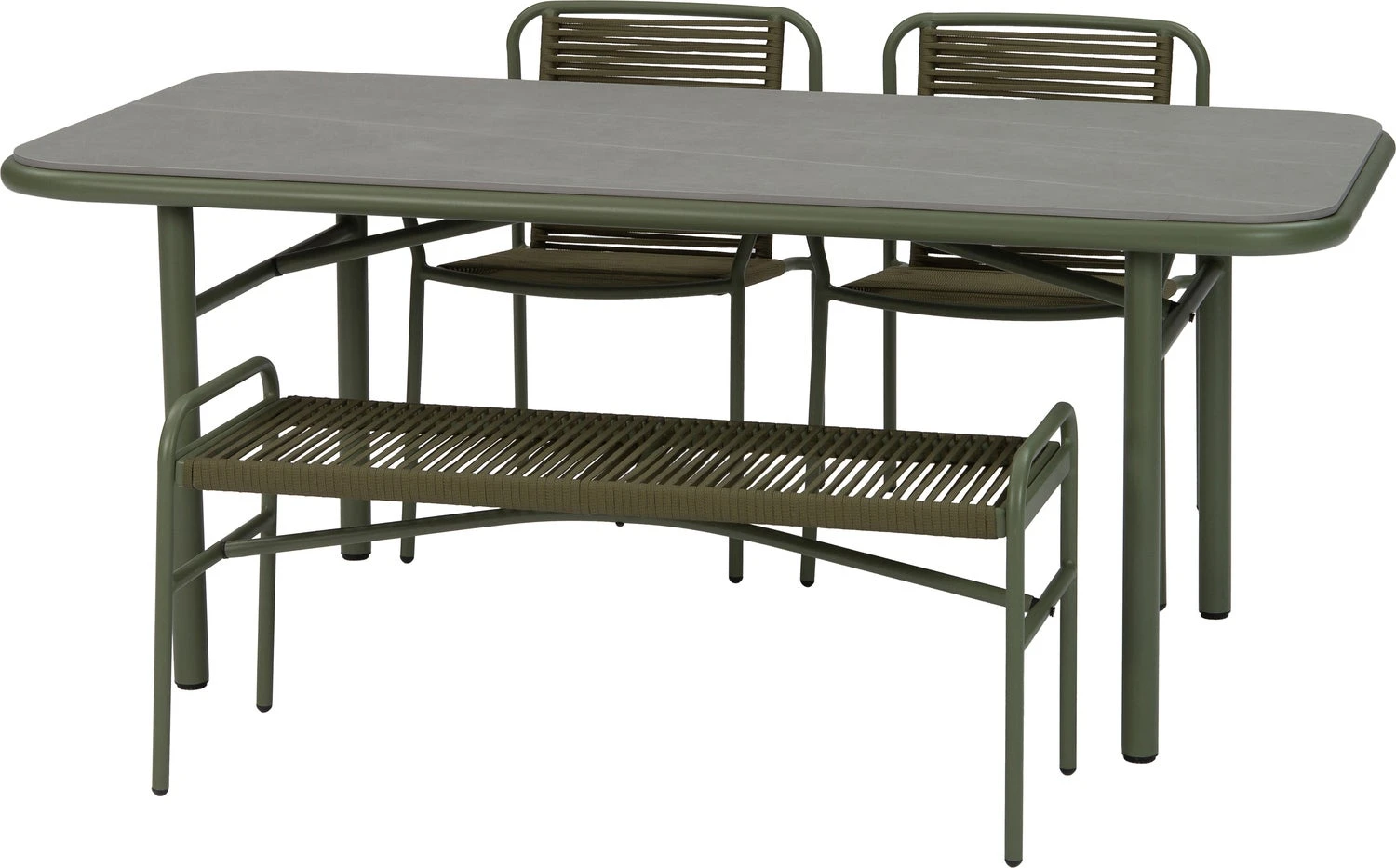 Maak tuinbank Jasmijn compleet met de bijpassende Jasmijn eettafelstoelen en de Jasmijn eettafel voor een rustig en sfeervol geheel. Of ga juist voor meer speelsheid door Jasmijn te mixen en te matchen met andere tuinmeubelen. Laat je inspireren door de mogelijkheden!