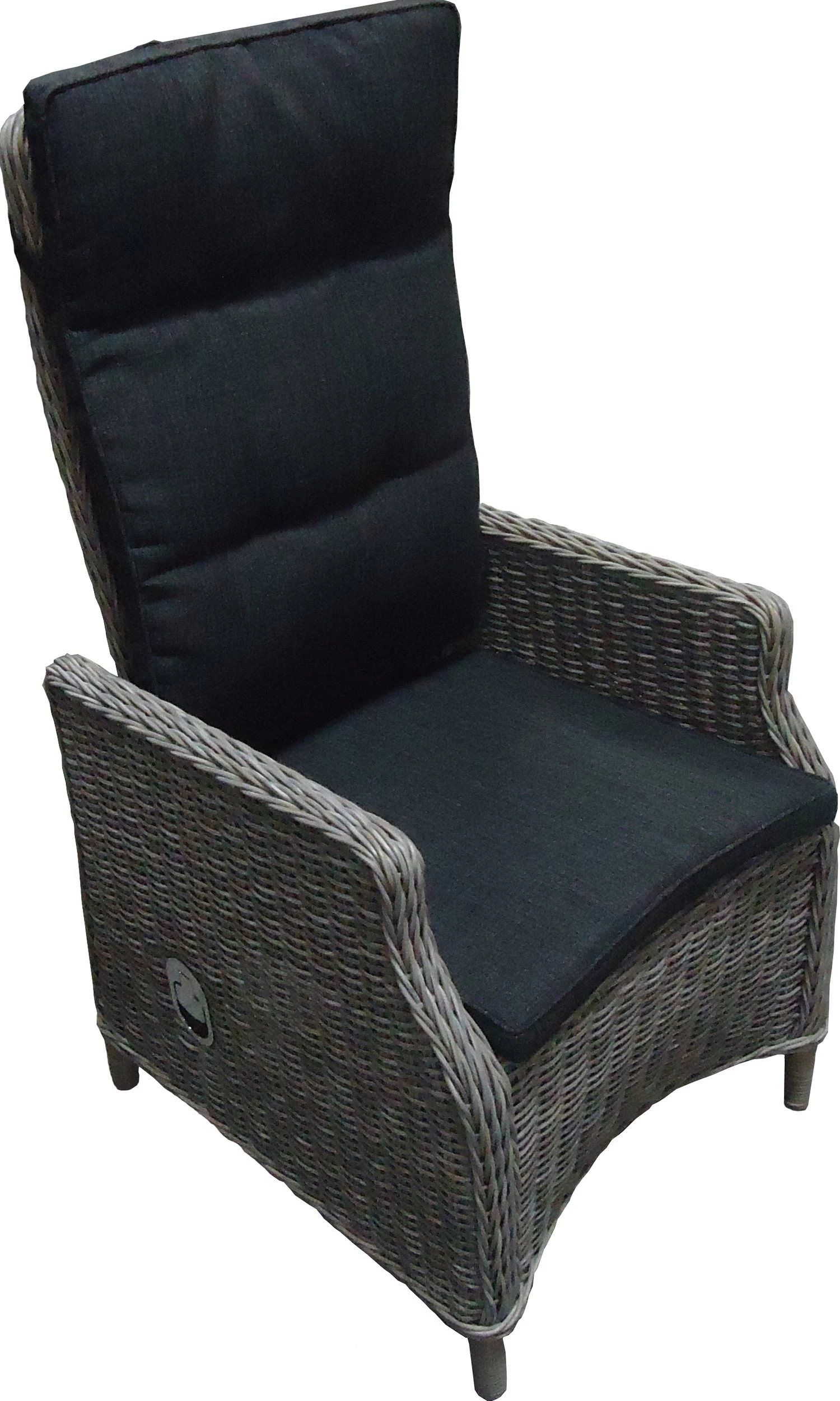 Een smaakvolle diningstoel uitgevoerd in de kleur rattan mixed brown. De stoel heeft een verstelbare rugleuning voor nog meer comfort. Houd je van lekker lang tafelen? Dan zit je met deze stoel gebakken. Na het eten zet je gewoon de rugleuning naar achteren en uitbuiken maar! De stoel is gemaakt van wicker gevlochten op een aluminium frame en wordt geleverd inclusief kussens in de kleur grijs. Afmeting 67 x 58 x 115 cm. 2 jaar garantie.
