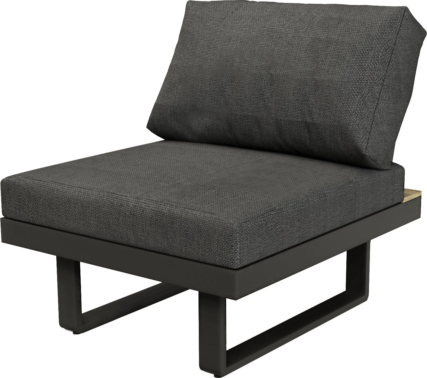 Uitbreidingsstuk Thom plaats je gemakkelijk tussen beide loungebanken in voor een extra grote loungehoek. Zowel tussen het rechter als het linker deel kan dit Thom tussenstuk worden geplaatst waardoor je dus tot wel twee extra zitplaatsen kunt creëren voor een royale 6-persoons loungeset. De meegeleverde kussens zijn antraciet van kleur en lekker goed gevuld voor een optimaal zitcomfort. Laat het genieten maar beginnen!