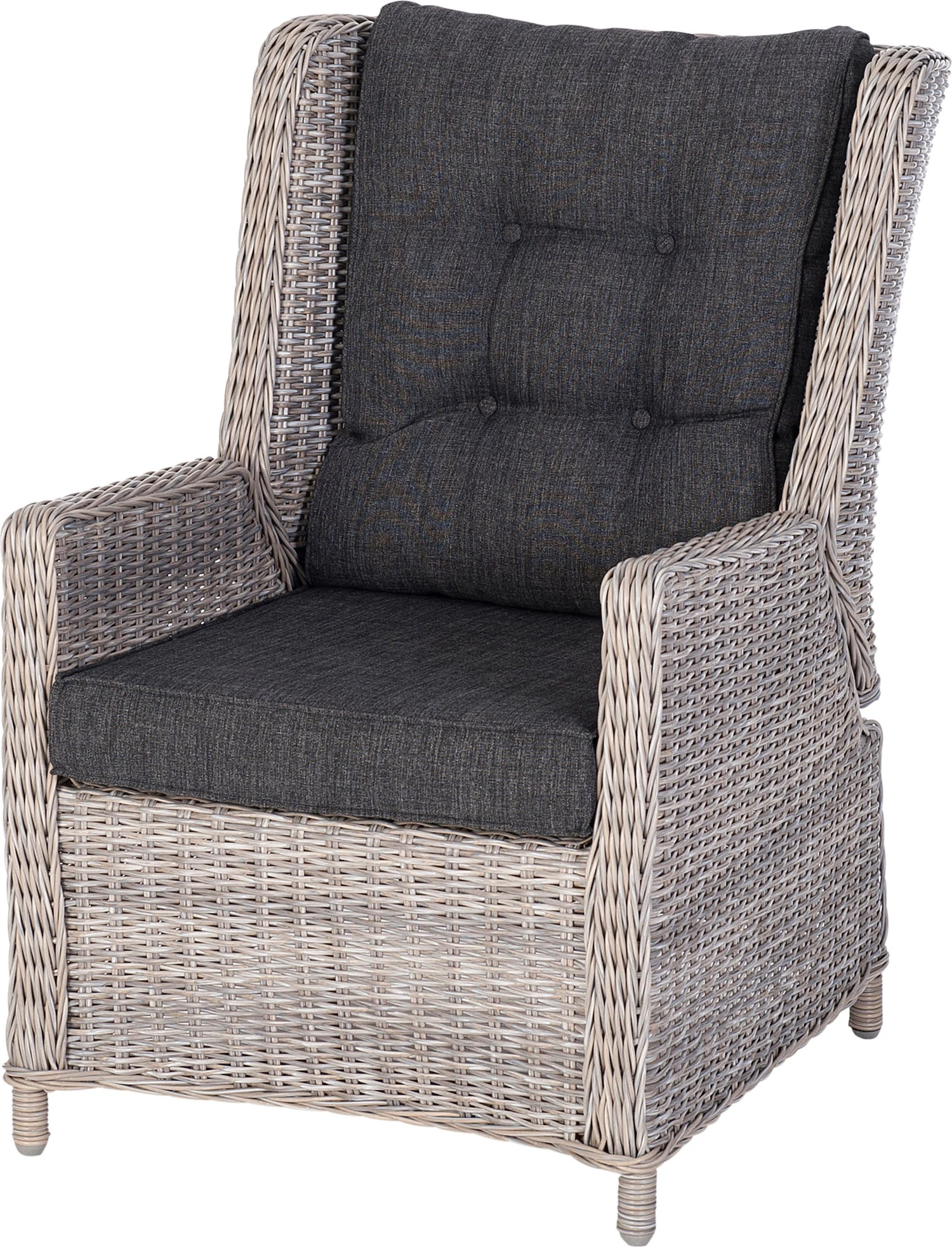 Loungestoel Sanur is gemaakt van wicker gevlochten op een aluminium frame en verkrijgbaar in meerdere uitvoeringen; als loungestoel, diningstoel en compacte stoel. Deze fijne lounge variant heeft een verstelbare rugleuning zodat hij gemakkelijk van eetstoel kan worden aangepast naar loungestoel.