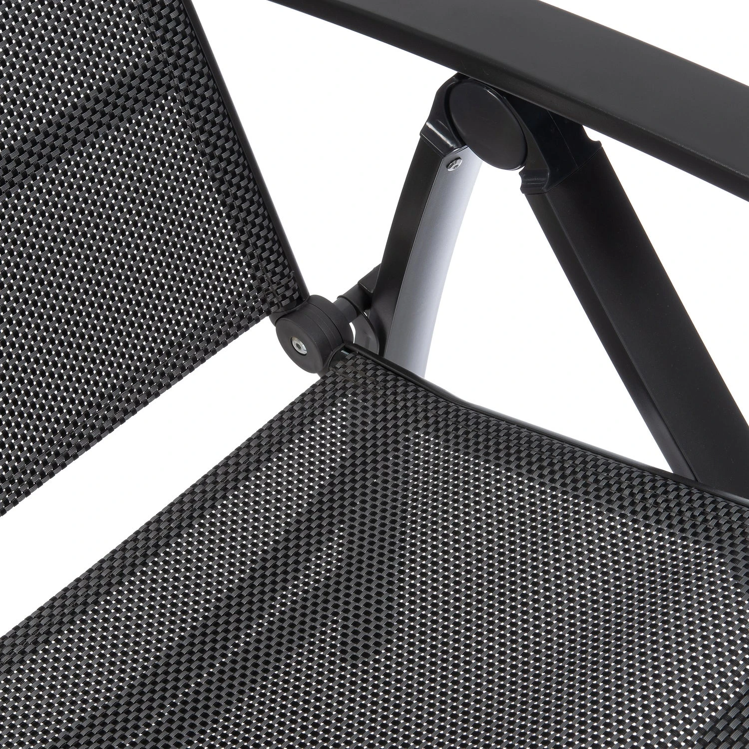 De Haikou standenstoel van Intratuin is een tijdloze aanwinst door het neutrale en degelijke design. Tuinstoel Haikou heeft een strak aluminium frame, in de kleur antraciet, wat de stoel lekker licht van gewicht maakt. De comfortabele textileen zitting is uitgevoerd in de kleur zwart en is aan de hand van de leuning gemakkelijk te verstellen naar de gewenste stand. Dit zorgt voor een optimaal zitcomfort en maakt deze tuinstoel ideaal om ontspannen te kunnen tafelen. Als je bent uitgegeten zet je gewoon de rugleuning naar achteren en uitbuiken maar! De Haikou tuinstoel combineer je met eettafel Bea voor een sfeervol en rustig geheel. Of combineer deze stoel met de bijbehorende voetenbank.