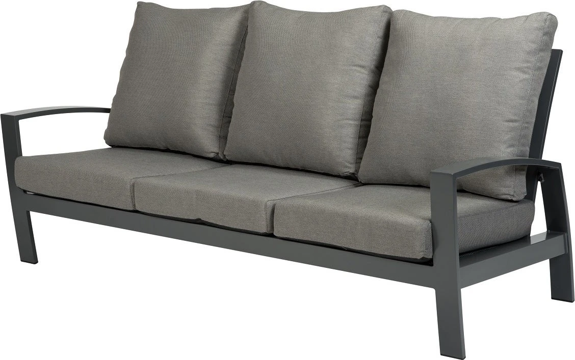 Deze 3-zits loungebank maakt onderdeel uit van de serie Valencia, maar kan door zijn neutrale uitstraling ook goed gecombineerd worden met andere tuinmeubelen. De 3-zits bank van Valencia is een luxe, comfortabele buitenbank met een eigentijdse uitstraling door het strakke design in de kleur antraciet en met lekkere grote kussen voor optimaal loungegenot.