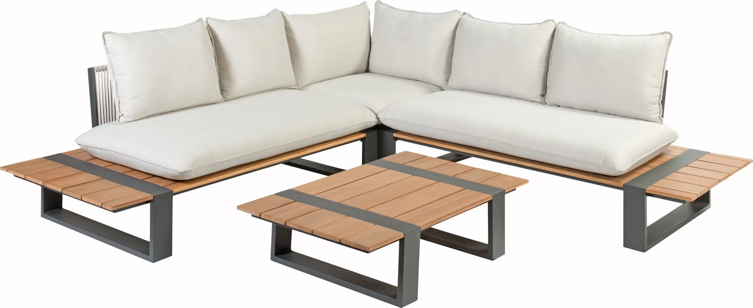 Loungeset Dawson is 4-delig en bestaat uit een 2 keer een 2-zits loungebank, afmetingen 165 x 80 x 76 cm, een hoekstuk, afmetingen 80 x 80 x 76 cm en een loungetafel, afmetingen 120 x 80 x 30 cm. De Dawson loungeset wordt geleverd inclusief 6 comfortabele kussens in de kleur dove. Zithoogte 43 cm, 1 jaar garantie. Loungeset Dawson is gemakkelijk zelf te monteren aan de hand van de meegeleverde instructie.