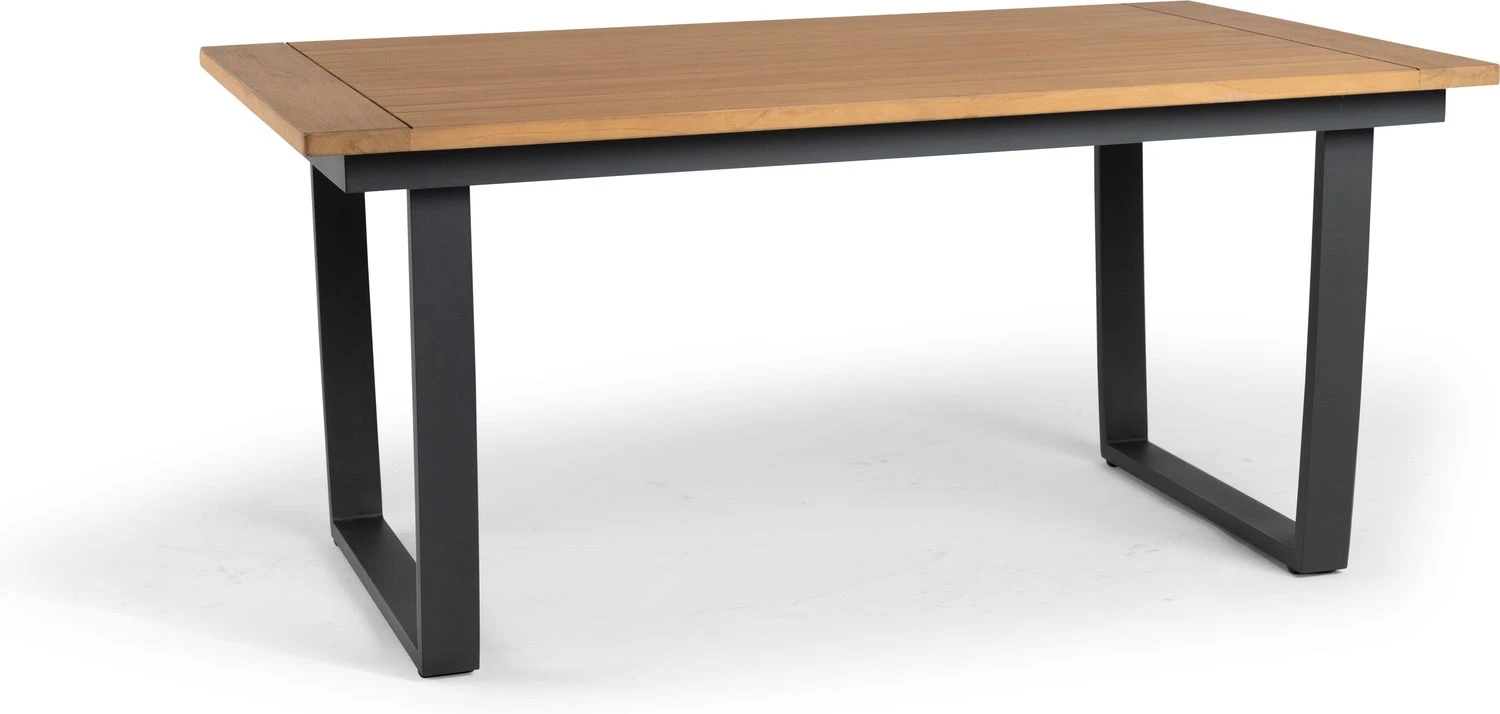 Wordt jij ook zo vrolijk van lange avondjes tafelen in de buitenlucht? Een fijne tuintafel is onmisbaar om optimaal van je tuin te genieten en gebruik je veel meer dan voor etentjes alleen. Deze leuke eettafel uit de serie Liv heeft een aluminium frame in de kleur antraciet en een tafelblad van teakhout in de kleur naturel. De tuintafel is lekker licht van gewicht door het aluminium onderstel dat is afgewerkt met een beschermende poedercoating.