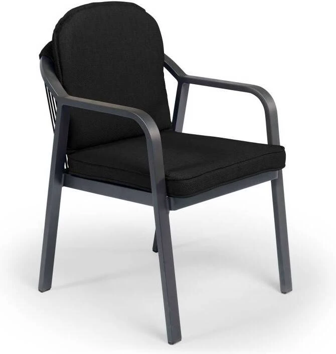 Eettafelstoel Pep van het merk Tierra Outdoor vormt een aanwinst op je terras door zijn moderne vormgeving en tijdloze karakter. De afgeronde hoeken geven deze Pep eettafelstoel een speelse twist. Diningstoel Pep heeft een gecoat aluminium frame in de kleur zwart en een rugleuning van duurzaam geweven Olefin touw dat zeker niet onopgemerkt zal blijven.