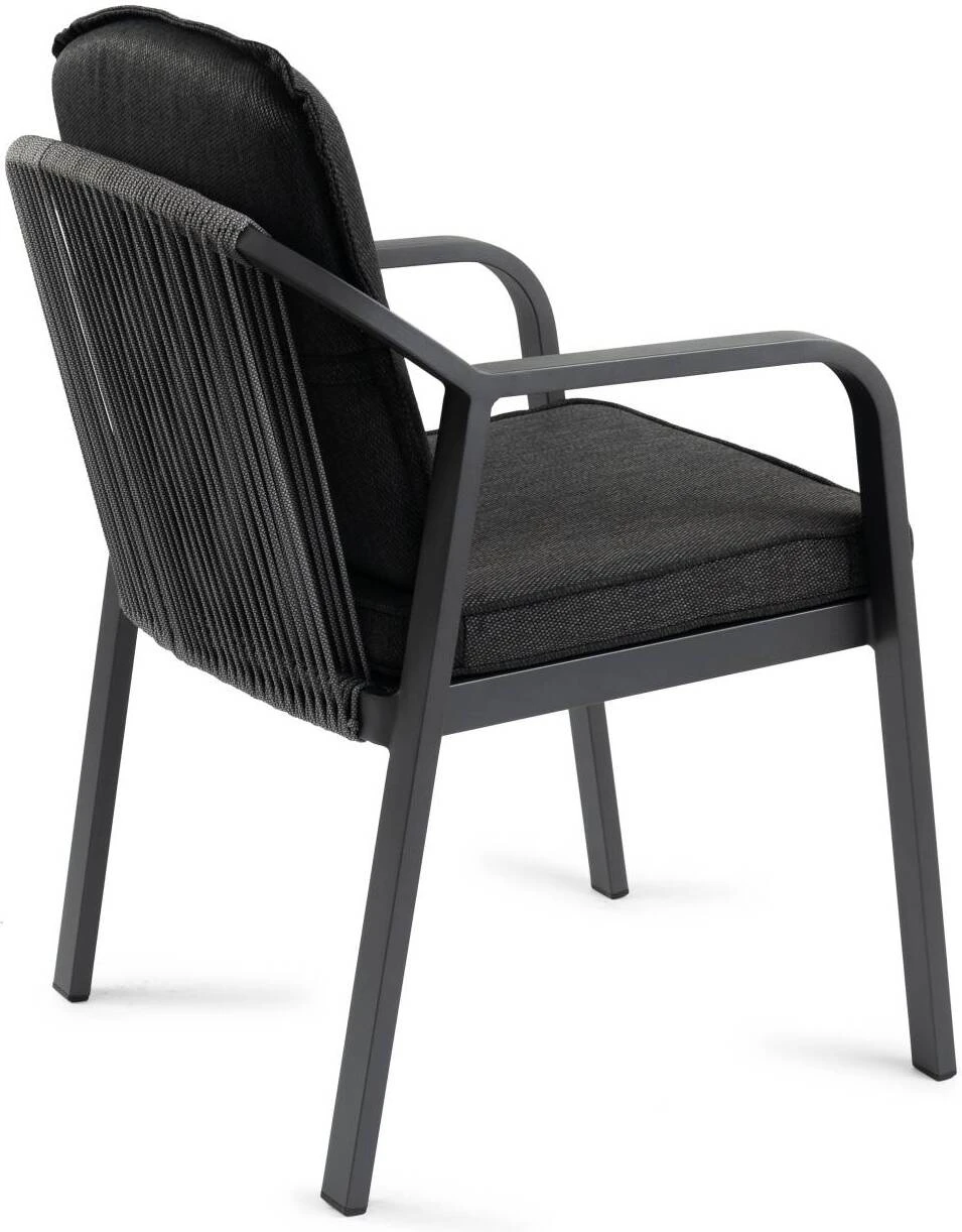 Dit touw is speciaal ontwikkeld voor buitengebruik en bevat een oersterke synthetische vezel die je naast de stevigheid ook steeds vaker terug ziet komen in de tuin door het hoge decoratiegehalte. De luxe “all weather” kussens worden meegeleverd en zijn grijs van kleur.