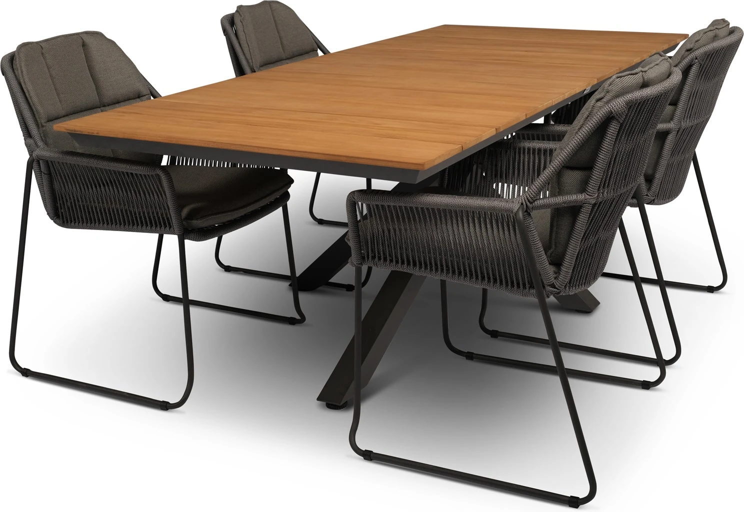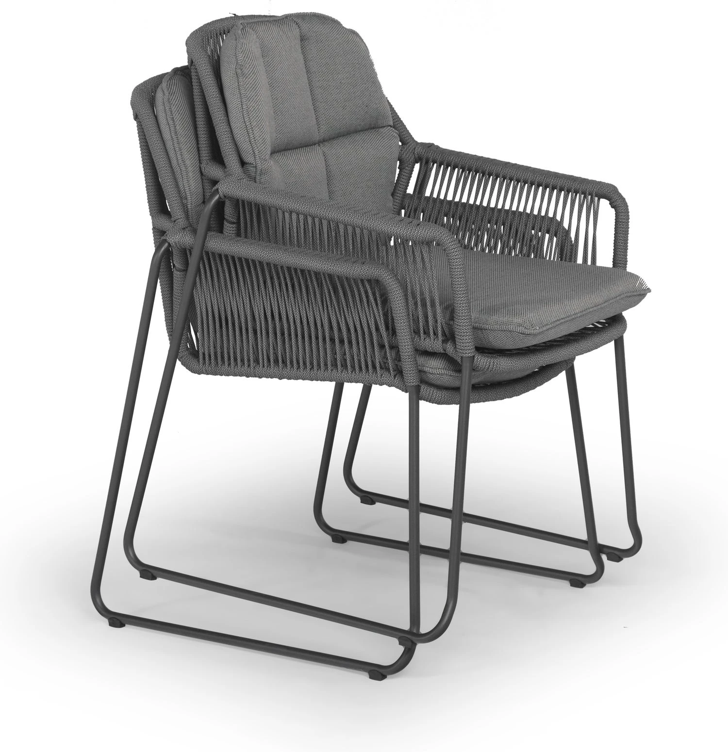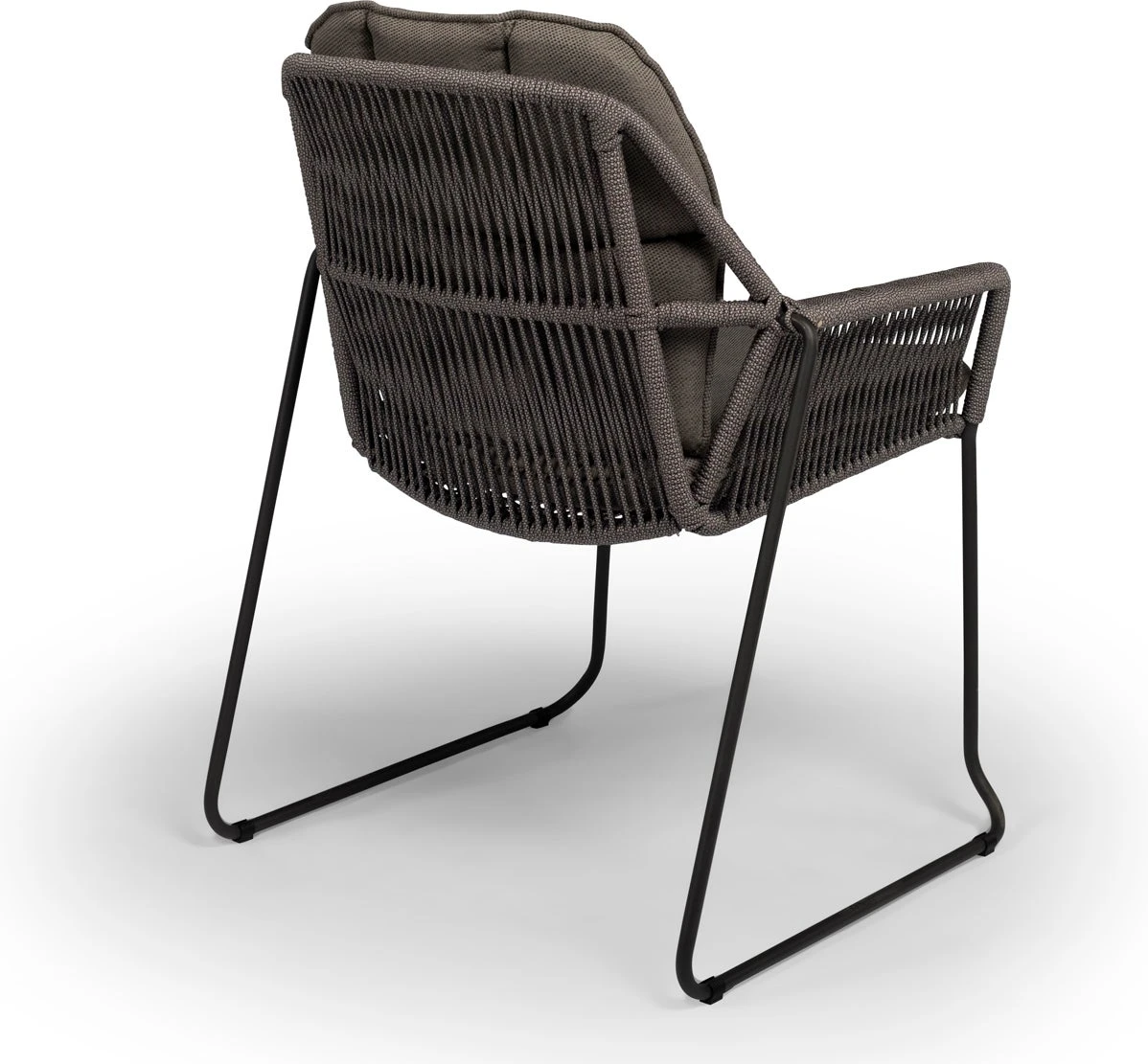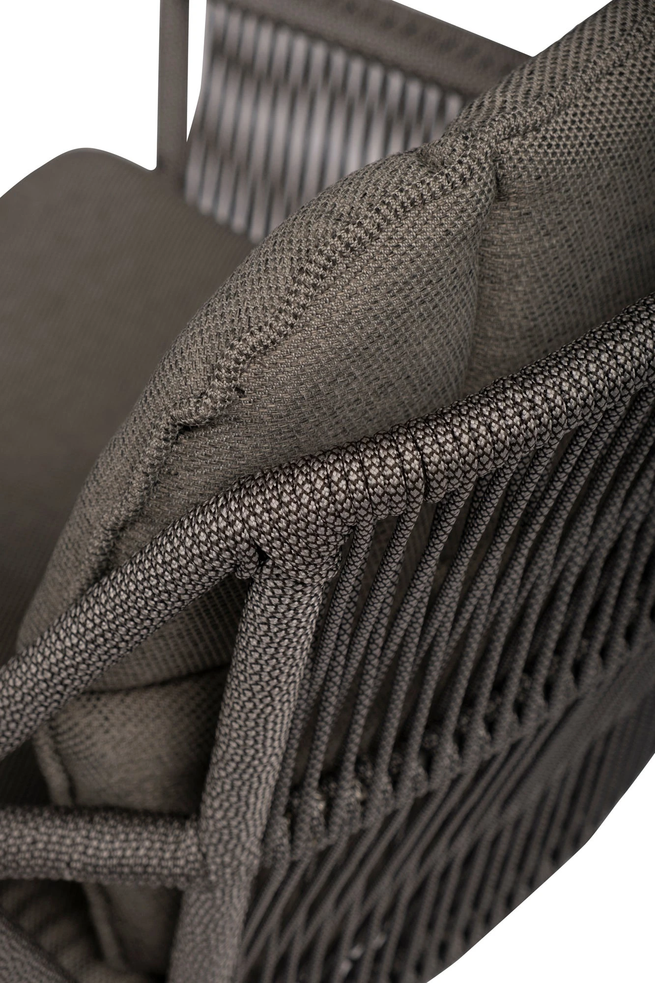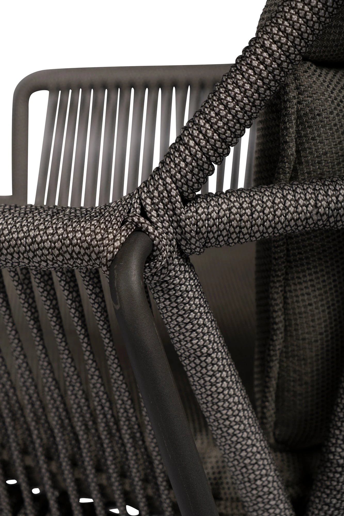 De Rivera eettafelstoel uit de collectie van Tierra Outdoor zal zeker niet onopgemerkt blijven door het eigentijdse design en het luxe materiaalgebruik. Eettafelstoel Rivera heeft een aluminium frame dat is afgewerkt met een beschermende poedercoating in stoer charcoal. Aluminium is stevig, lekker licht in gewicht en bovendien makkelijk in onderhoud. De unieke rope zitting in de kleur antraciet is helemaal van nu en zorgt niet alleen voor een optimaal zitcomfort, het heeft ook een hoog decoratie gehalte.