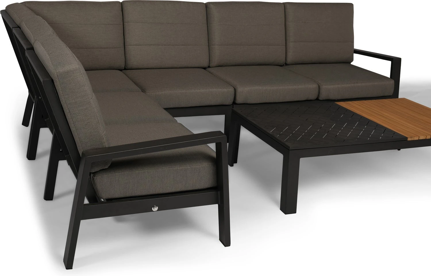 Dit zeer comfortabel middenstuk Queens heeft een frame van hoogwaardig aluminium in de kleur charcoal. Aluminium is modern en lekker licht in gewicht zodat je het gemakkelijk kunt verplaatsen met de seizoenen. Met dikke kussens verzacht je de stoere look van je tuinmeubelen. De kussens zijn all weather en kunnen dus jaarrond buiten blijven liggen.