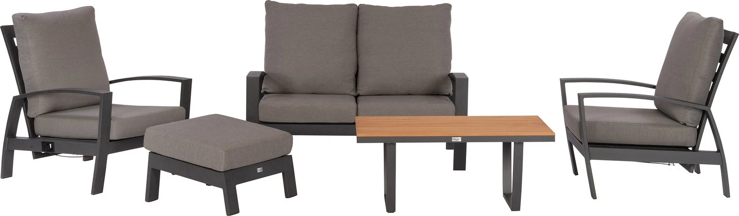 Ruime en comfortabele zitplekken, dat is waar de Valencia loungeset zich door laat kenmerken. De Valencia serie bestaat uit diverse onderdelen, waardoor de tuinset voor iedereen passend te combineren is. De Valencia serie is van aluminium met een beschermende charcoal AkzoNobel poedercoating, waardoor de tuinmeubelen goed bestand zijn tegen weersinvloeden en bovendien lekker licht in gewicht, en tevens gemakkelijk te verplaatsen zijn. De loungestoelen hebben een verstelbare rugleuning voor nog meer loungeplezier. De all-weather Olefin kussens zorgen voor een optimaal zitcomfort en kunnen het hele jaar buiten blijven liggen. Ontspannen hoeft niet moeilijk te zijn!